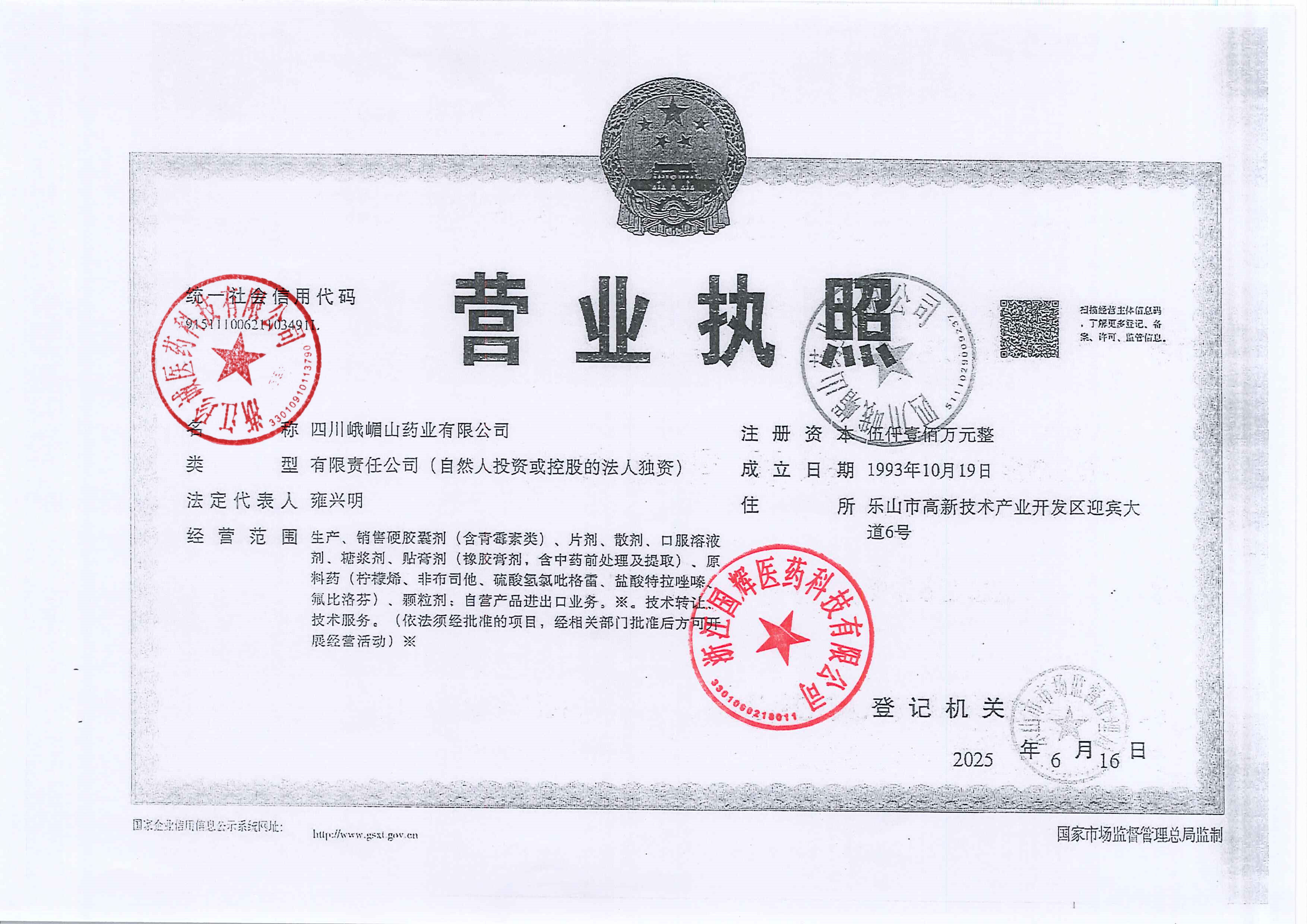 四川峨嵋山药业有限公司