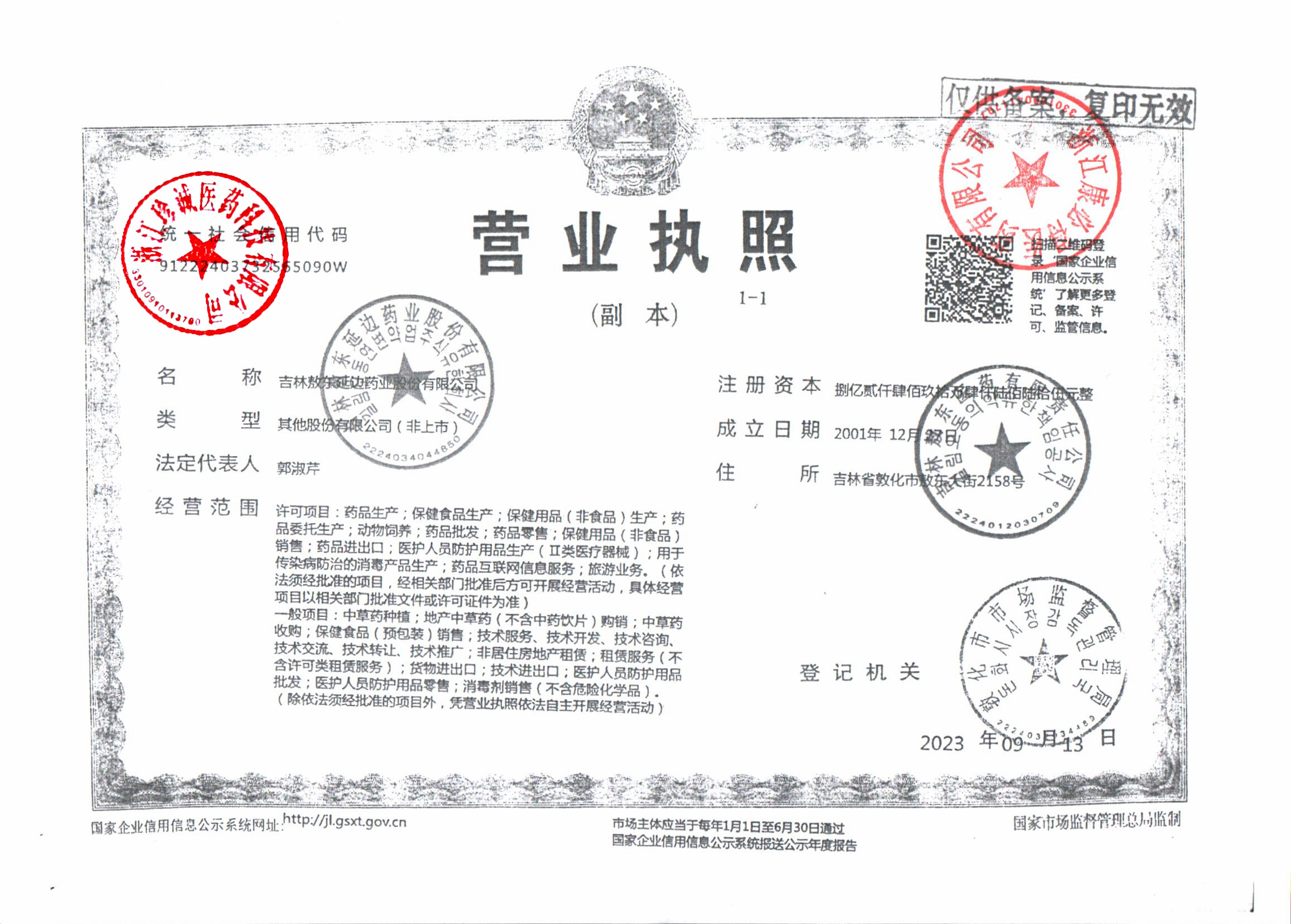 | 2 | Z99002624 | 吉林敖东延边药业股份有限公司 | 营业执照.jpg | Aug 21, 2025 9:46:15 AM | 查看下载 | |