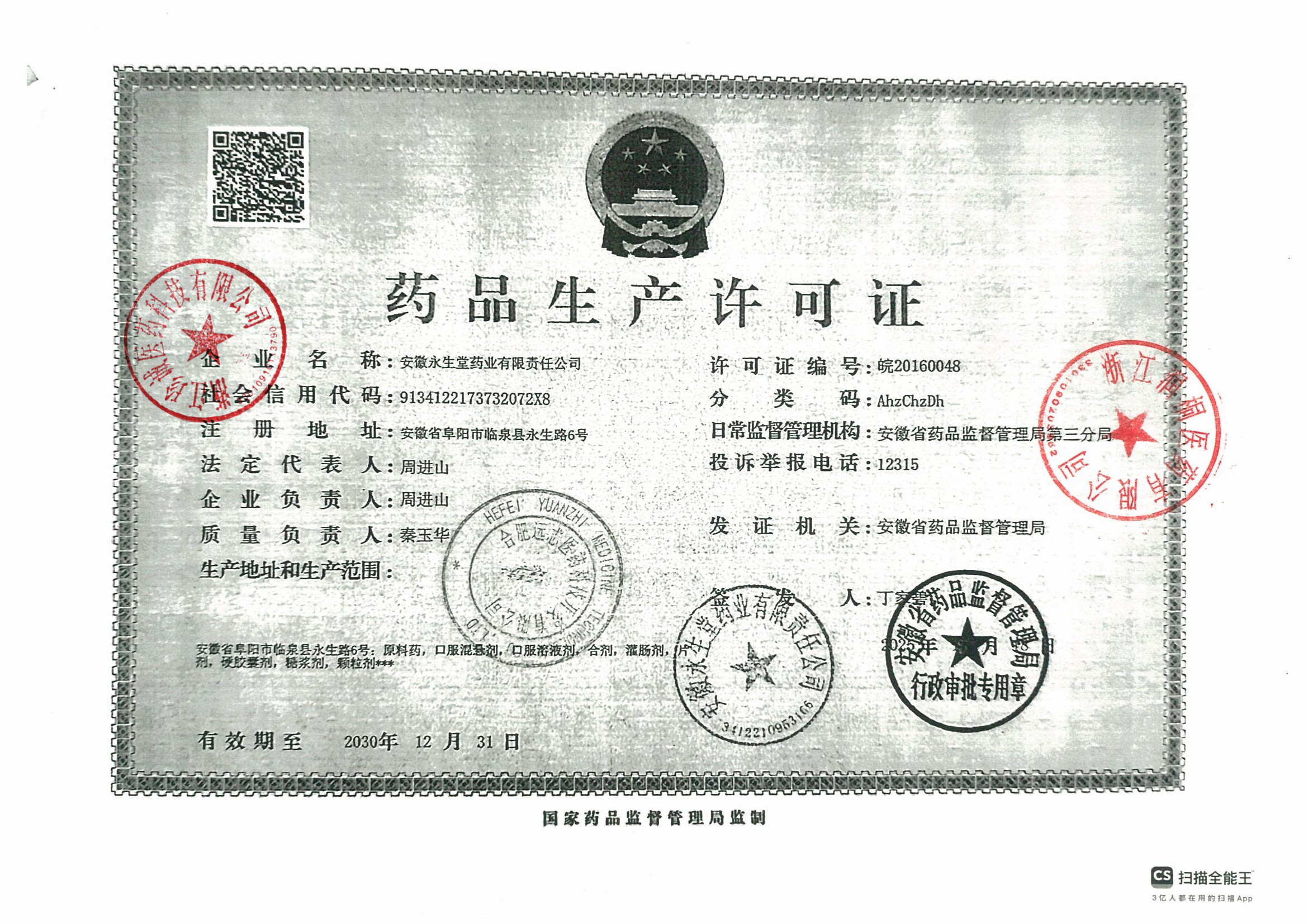 | 2 | Z99002670 | 安徽永生堂药业有限责任公司 | 许可证 (1).jpg | Jan 16, 2026 1:04:01 PM | 查看下载 | |