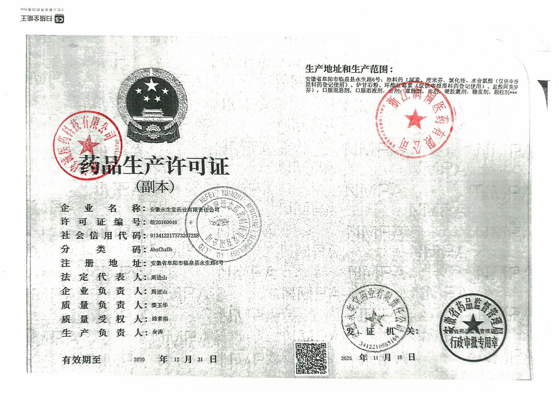 | 5 | Z99002670 | 安徽永生堂药业有限责任公司 | 营业执照副本.jpg | Apr 24, 2025 2:46:56 PM | 查看下载 | |