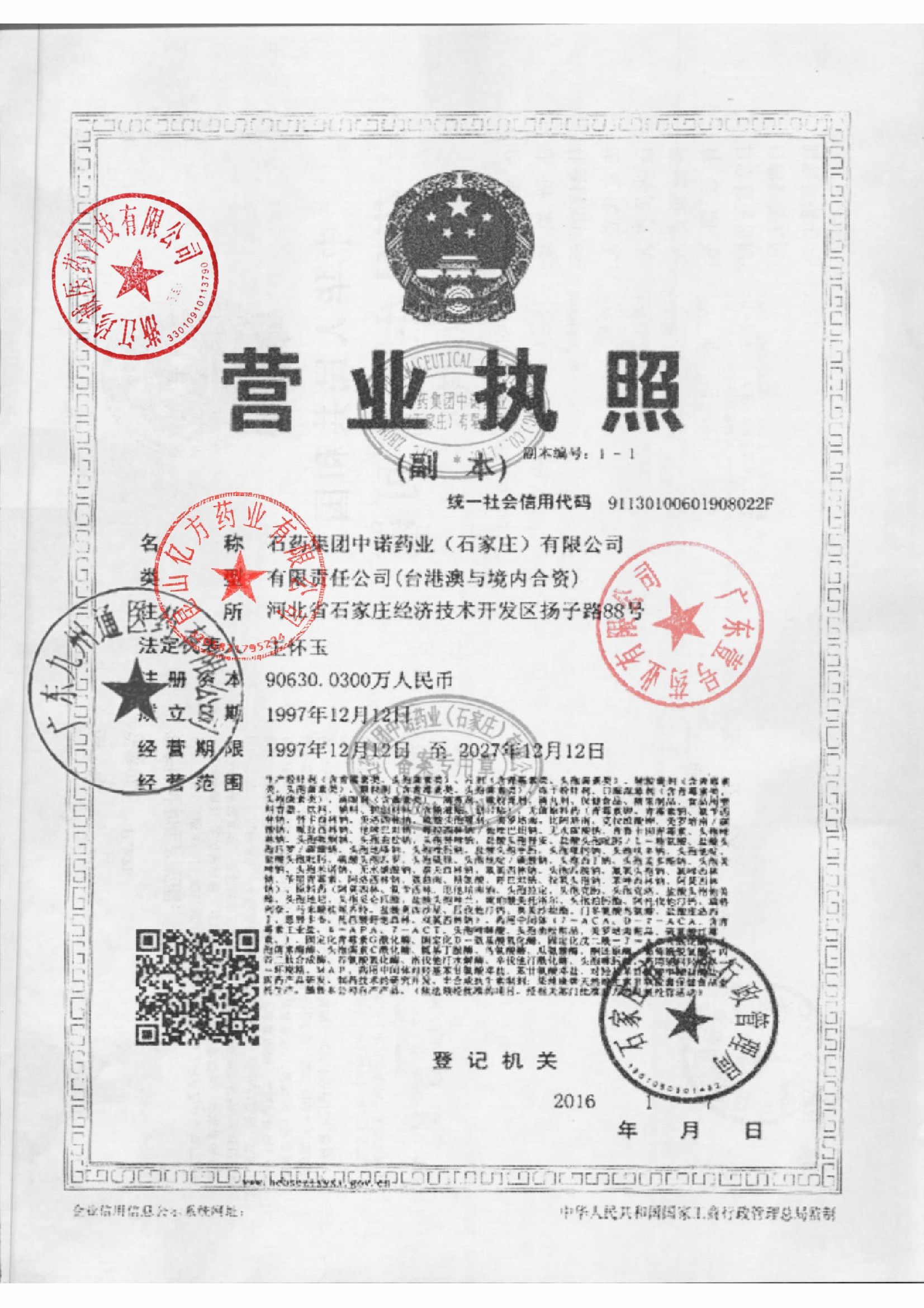 | 2 | Z99002690 | 石药集团中诺药业(石家庄)有限公司 | 营业执照.jpg | Nov 27, 2025 3:58:21 PM | 查看下载 | |