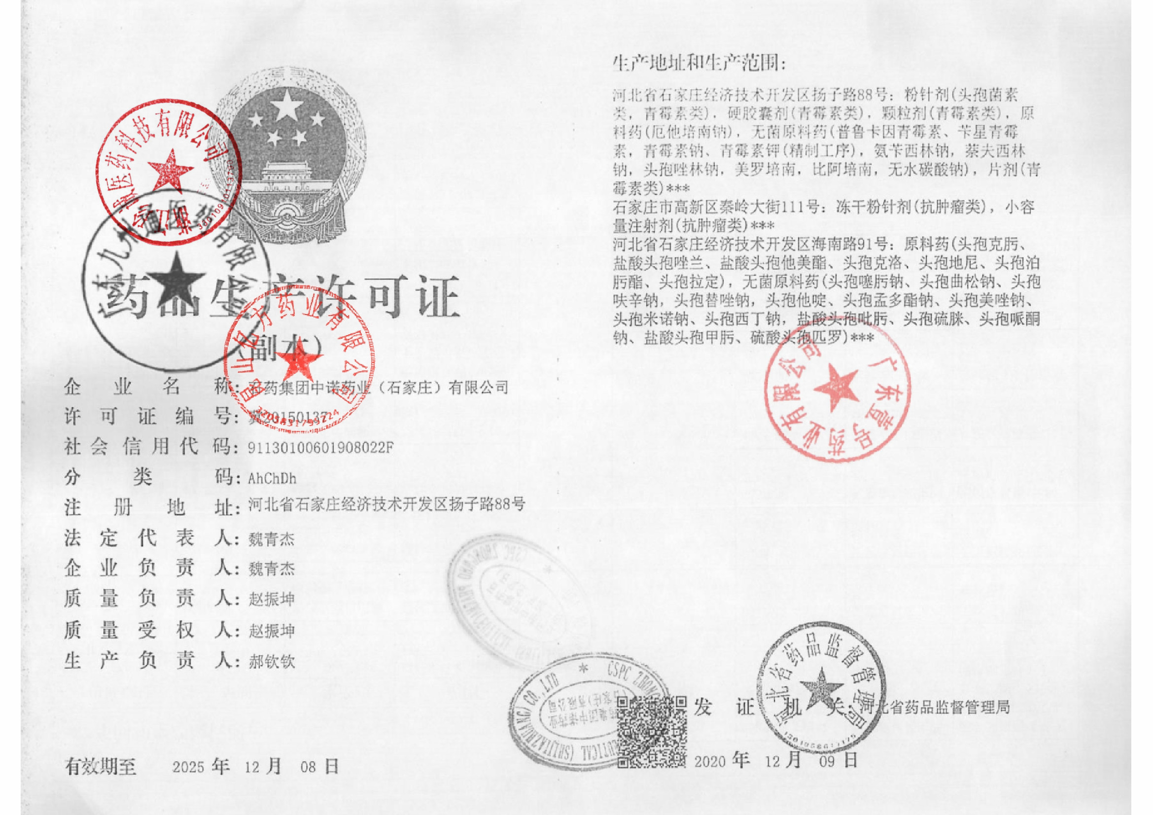 | 3 | Z99002690 | 石药集团中诺药业(石家庄)有限公司 | 许可证.jpg | Nov 27, 2025 3:58:21 PM | 查看下载 | |