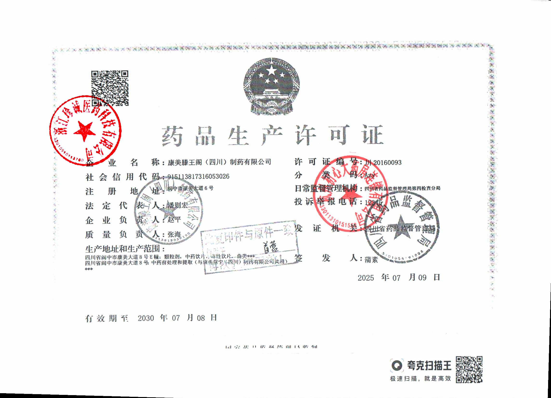 | 2 | Z99002746 | 康美滕王阁(四川)制药有限公司 | 新药品生产许可证.jpg | Sep 22, 2025 1:03:00 PM | 查看下载 | |
