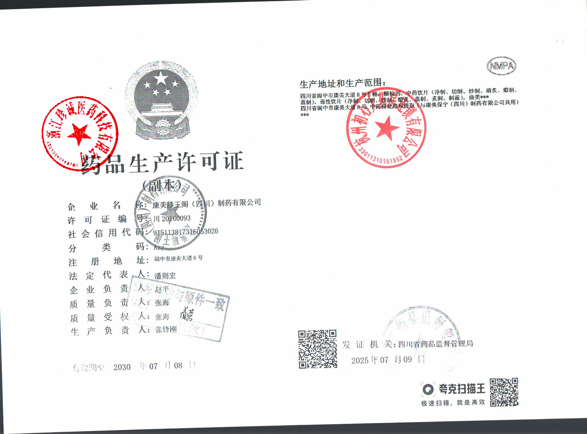 | 4 | Z99002746 | 康美滕王阁(四川)制药有限公司 | 2生产许可证.jpg | Dec 1, 2022 2:20:28 PM | 查看下载 |