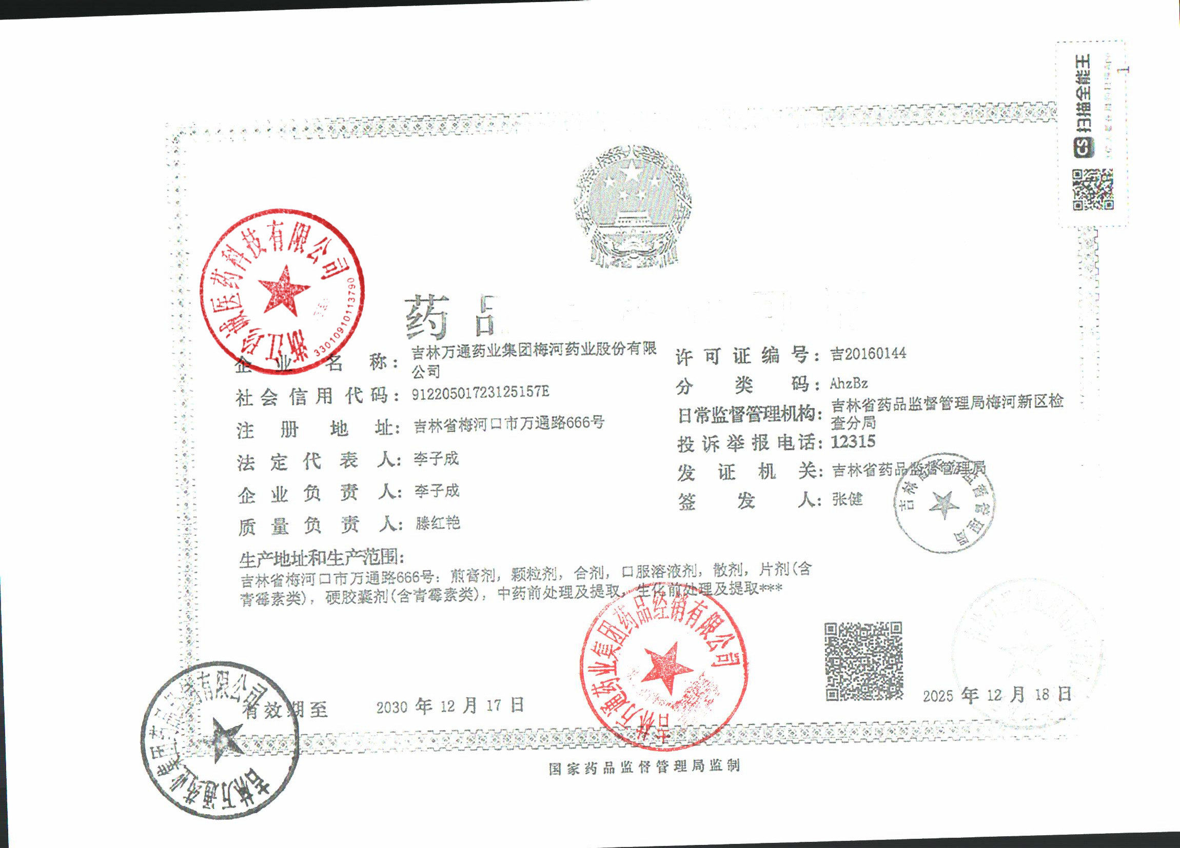 1 Z99002778 吉林万通药业集团梅河药业股份有限公司 许可证.jpg Jan 7, 2026 3:46:51 PM 查看下载