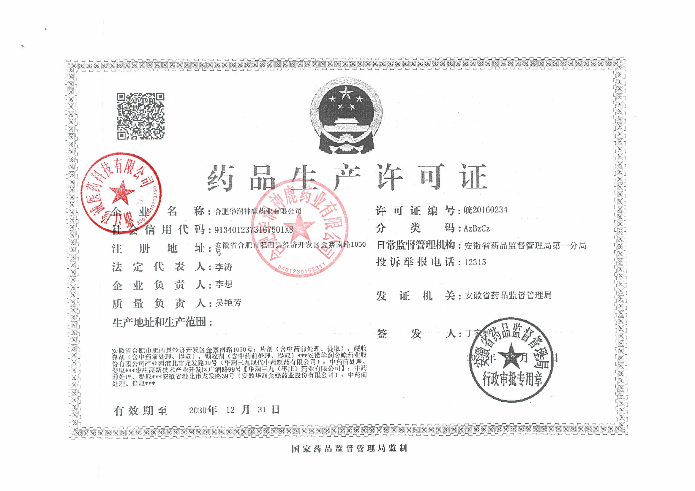 合肥华润神鹿药业有限公司