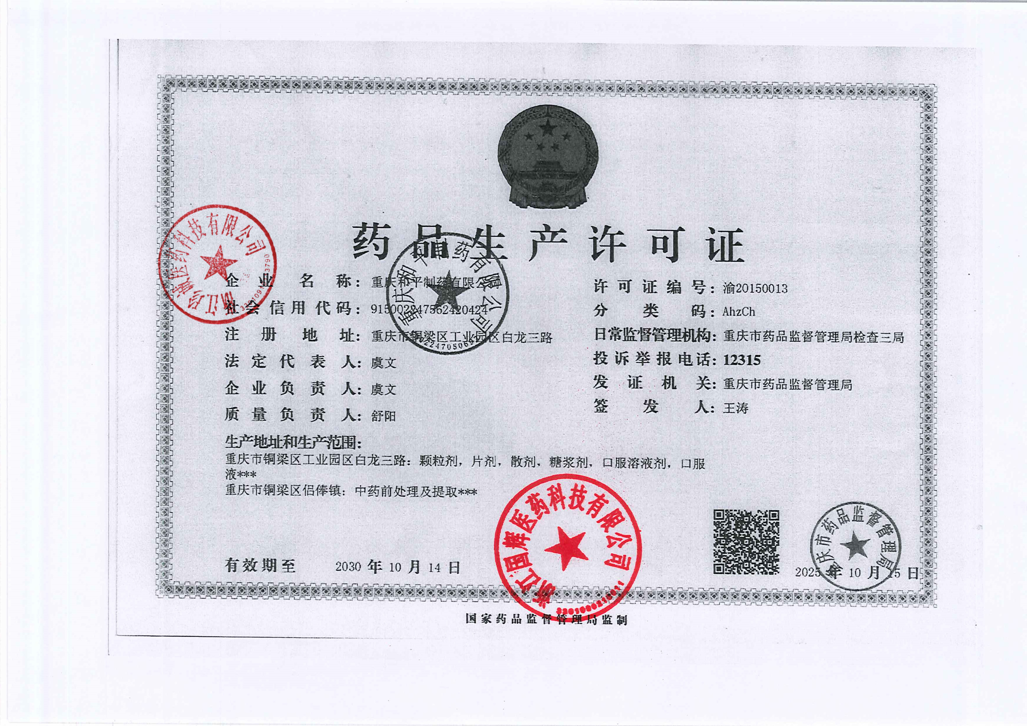 1 Z99002842 重庆和平制药有限公司 药品生产许可证.jpg Oct 21, 2025 2:04:34 PM 查看下载