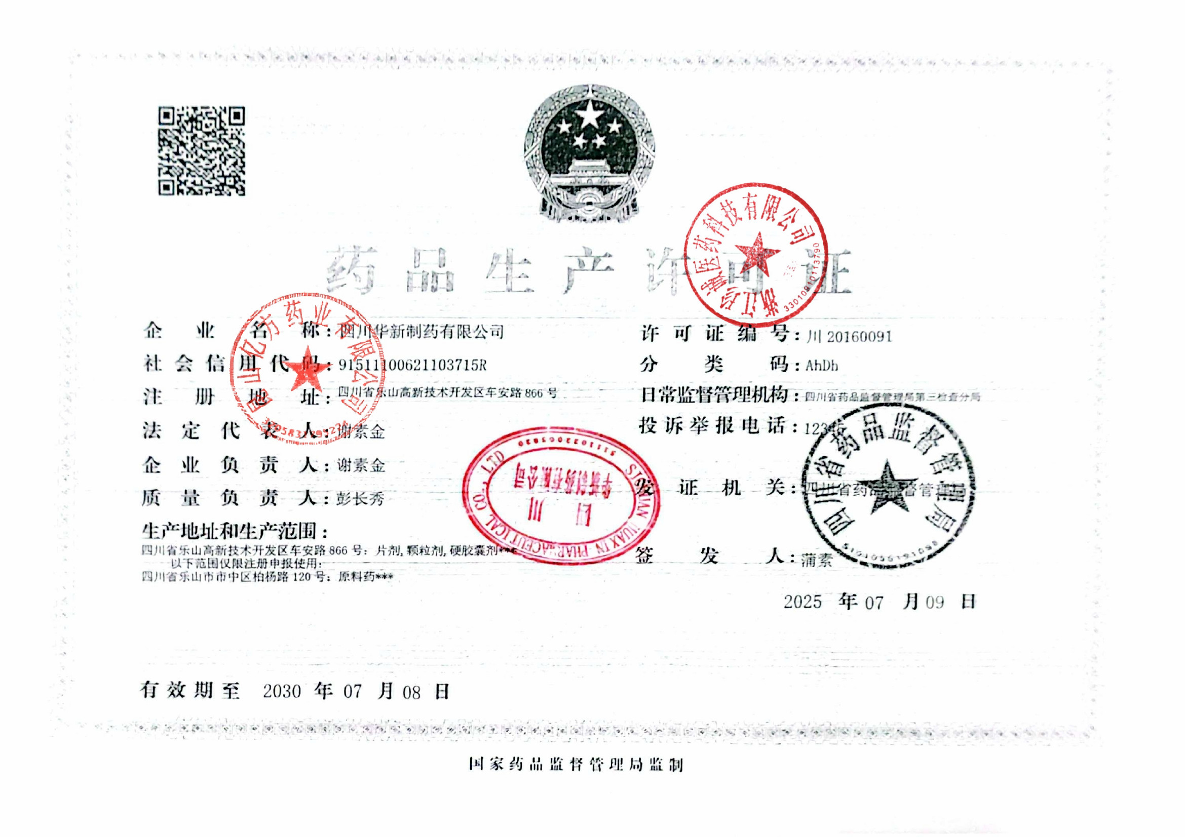 | 1 | Z99003124 | 四川华新制药有限公司 | 新许可证.jpg | Nov 14, 2025 1:15:57 PM | 查看下载 | |