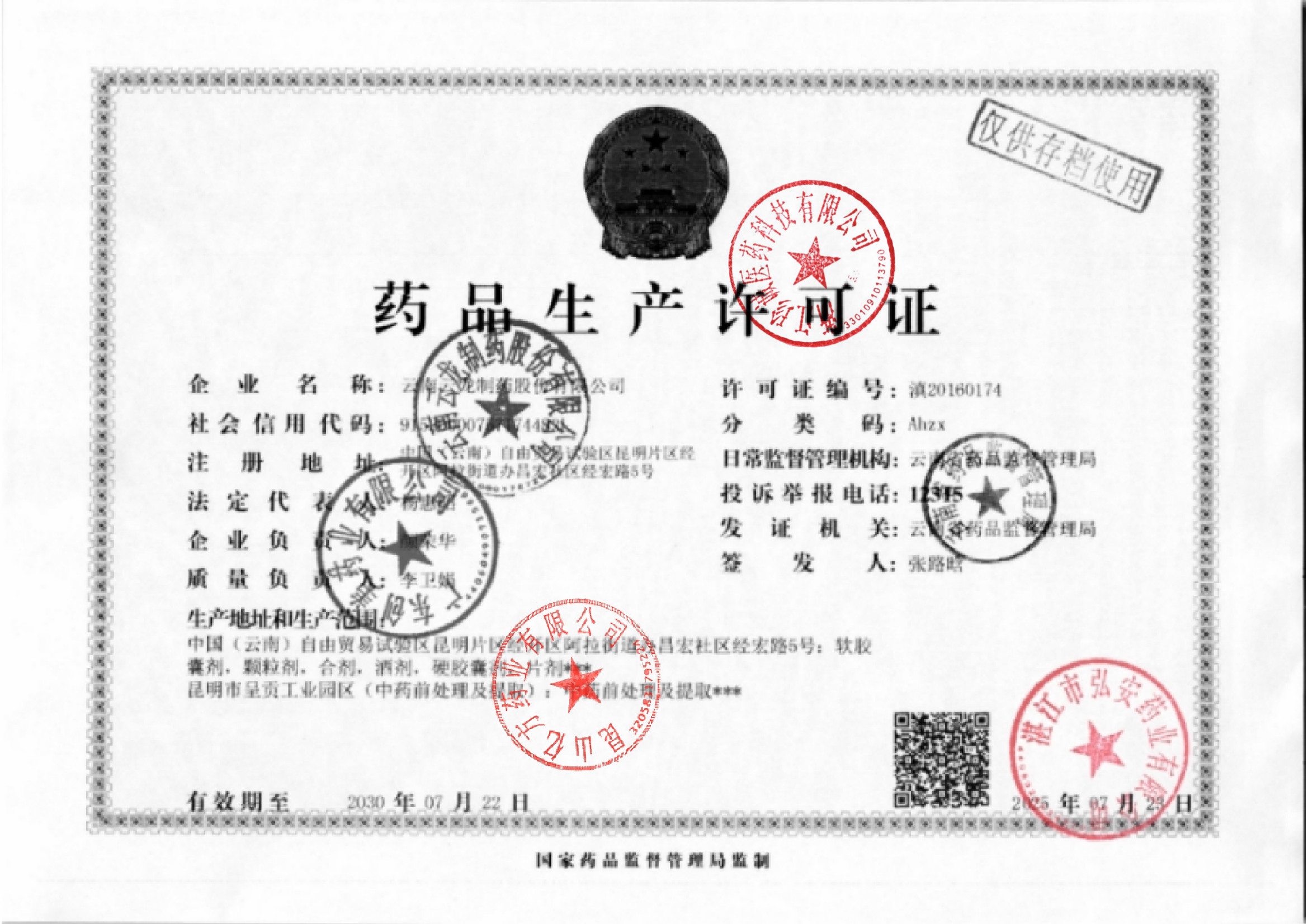 1 Z99003172 云南云龙制药股份有限公司 药品生产许可证0003.jpg Nov 13, 2025 3:55:26 PM 查看下载