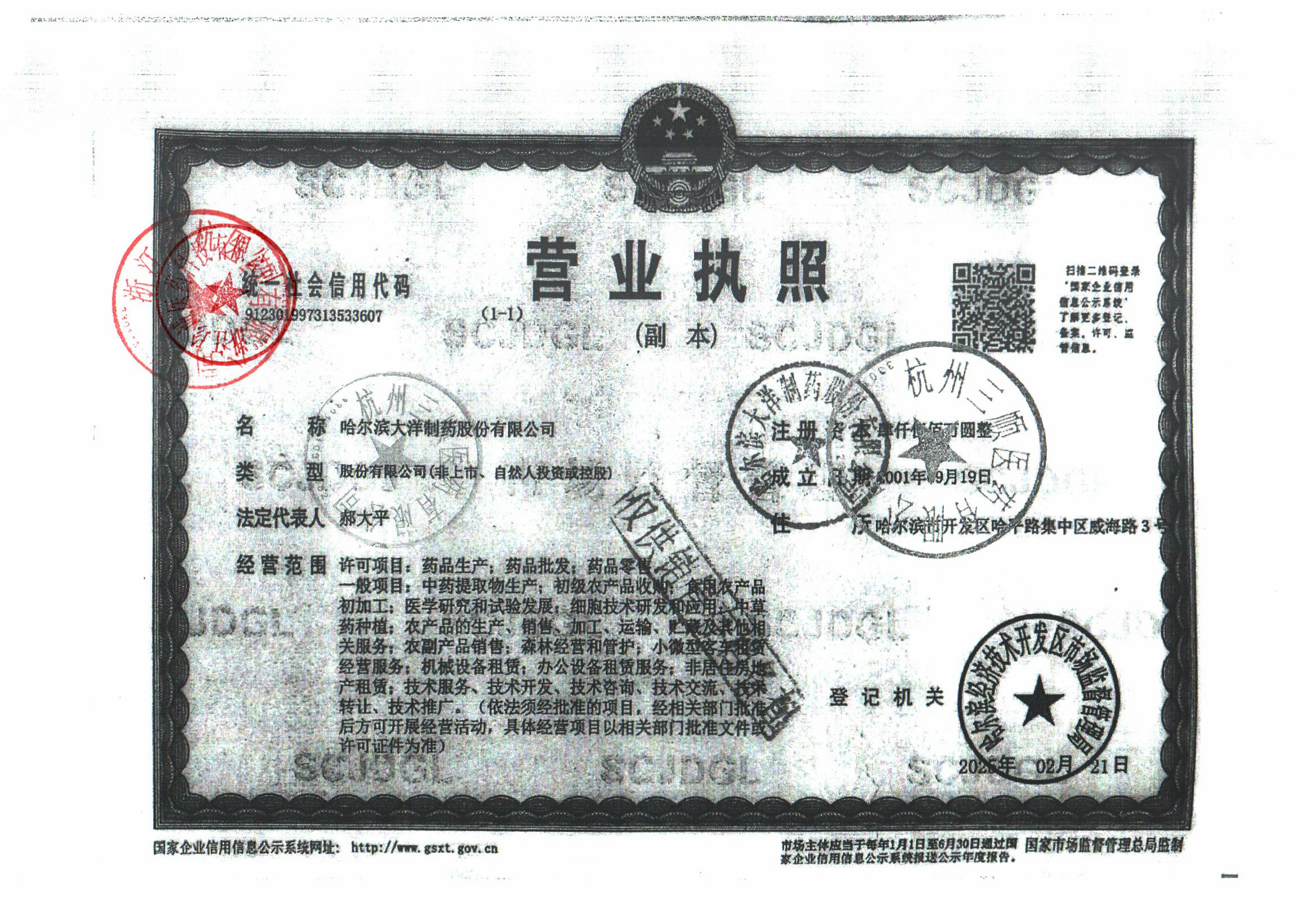 1 Z99003198 哈尔滨大洋制药股份有限公司 营业执照.jpg Apr 16, 2026 2:09:13 PM 查看下载