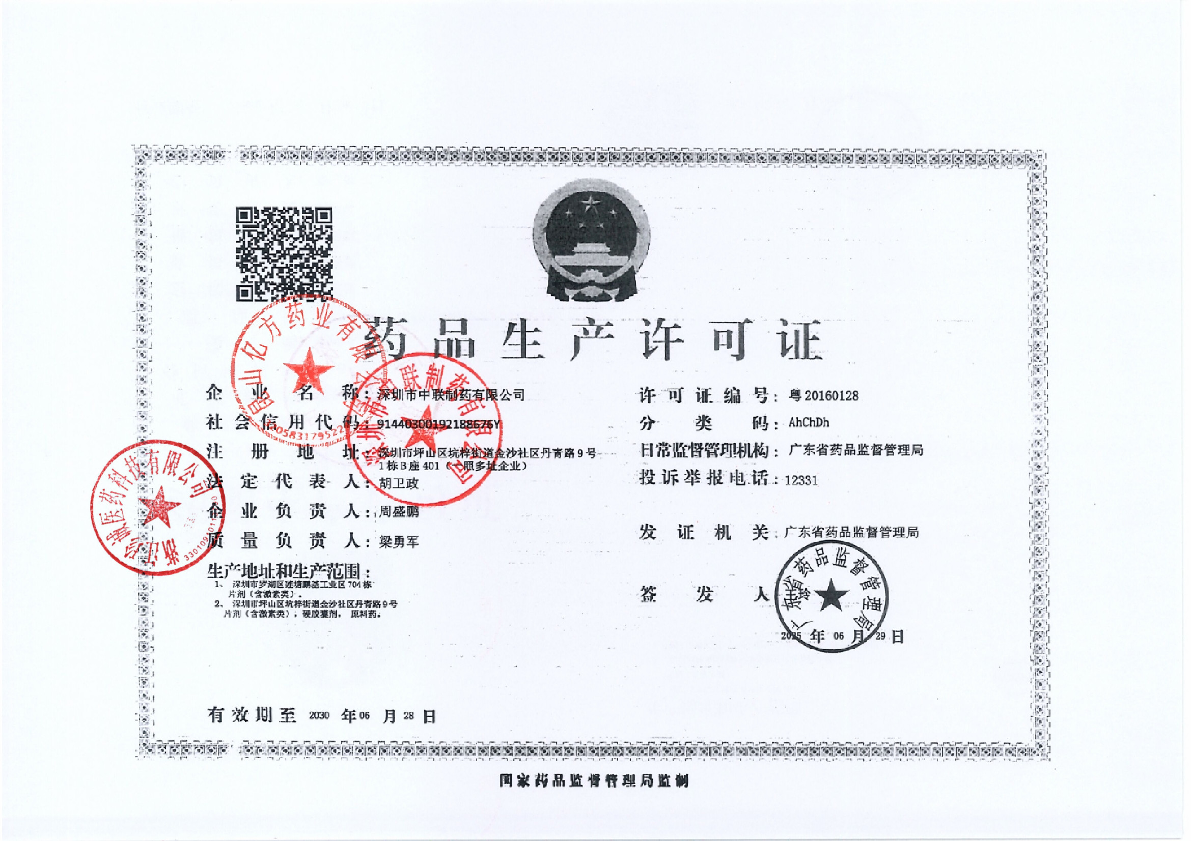 1 Z99003320 深圳市中联制药有限公司 药品生产许可证0001.jpg Nov 25, 2025 9:43:43 AM 查看下载
