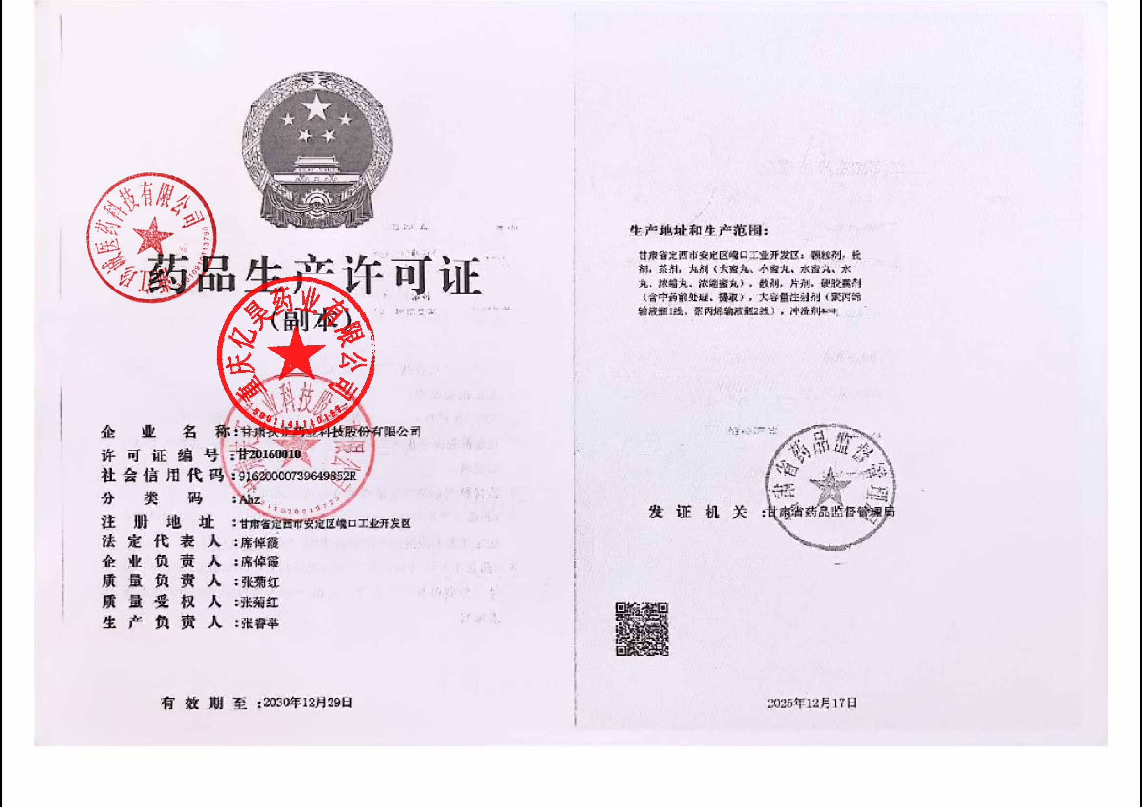 | 5 | Z99003596 | 甘肃扶正药业科技股份有限公司 | 药品生产许可.jpg | Apr 1, 2026 3:07:15 PM | 查看下载 |