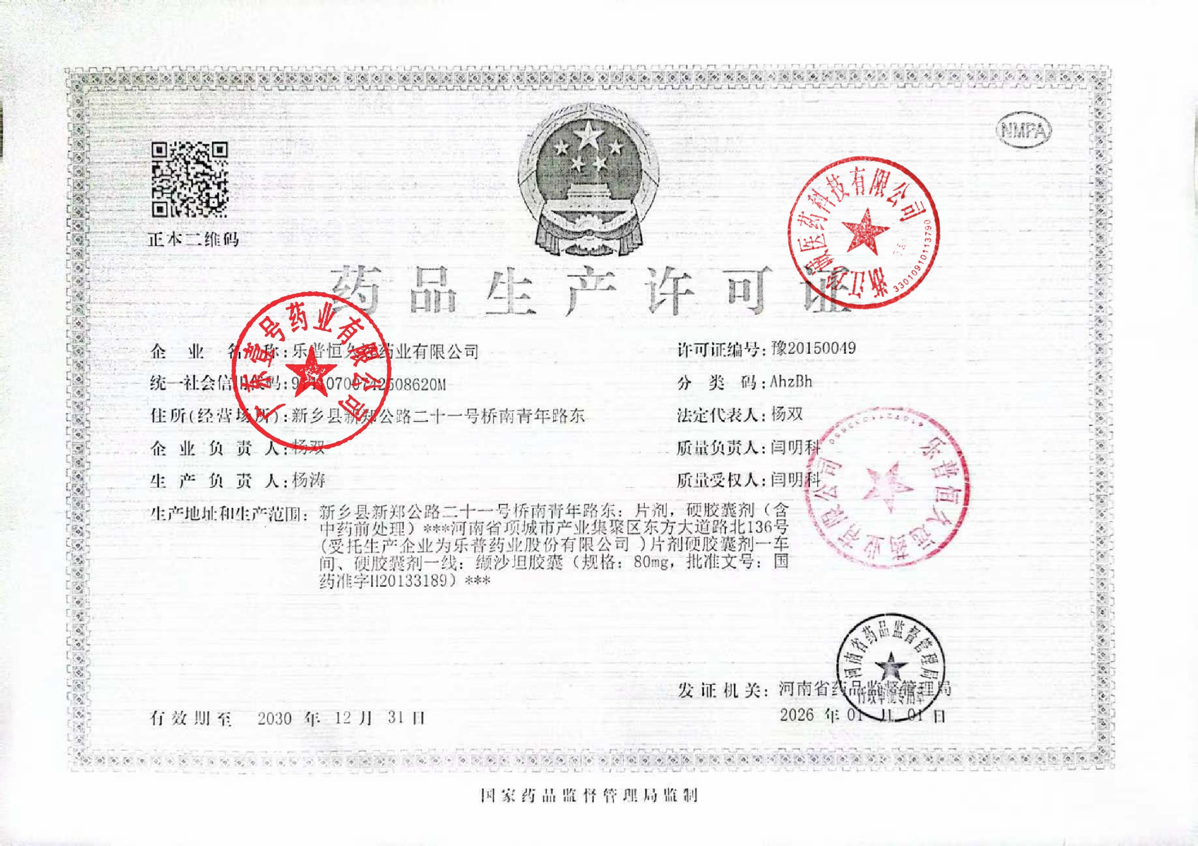 1 Z99003608 乐普恒久远药业有限公司 药品生产许可.jpg Jan 29, 2026 1:29:13 PM 查看下载