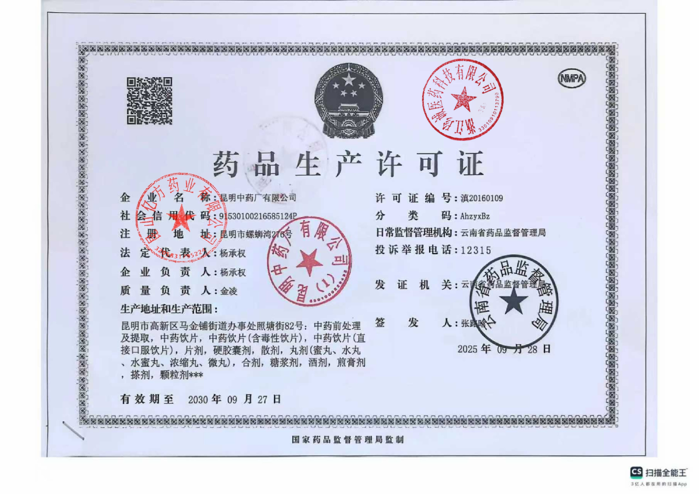 1 Z99003620 昆明中药厂有限公司 许可证 (2).jpg Jan 7, 2026 1:50:20 PM 查看下载