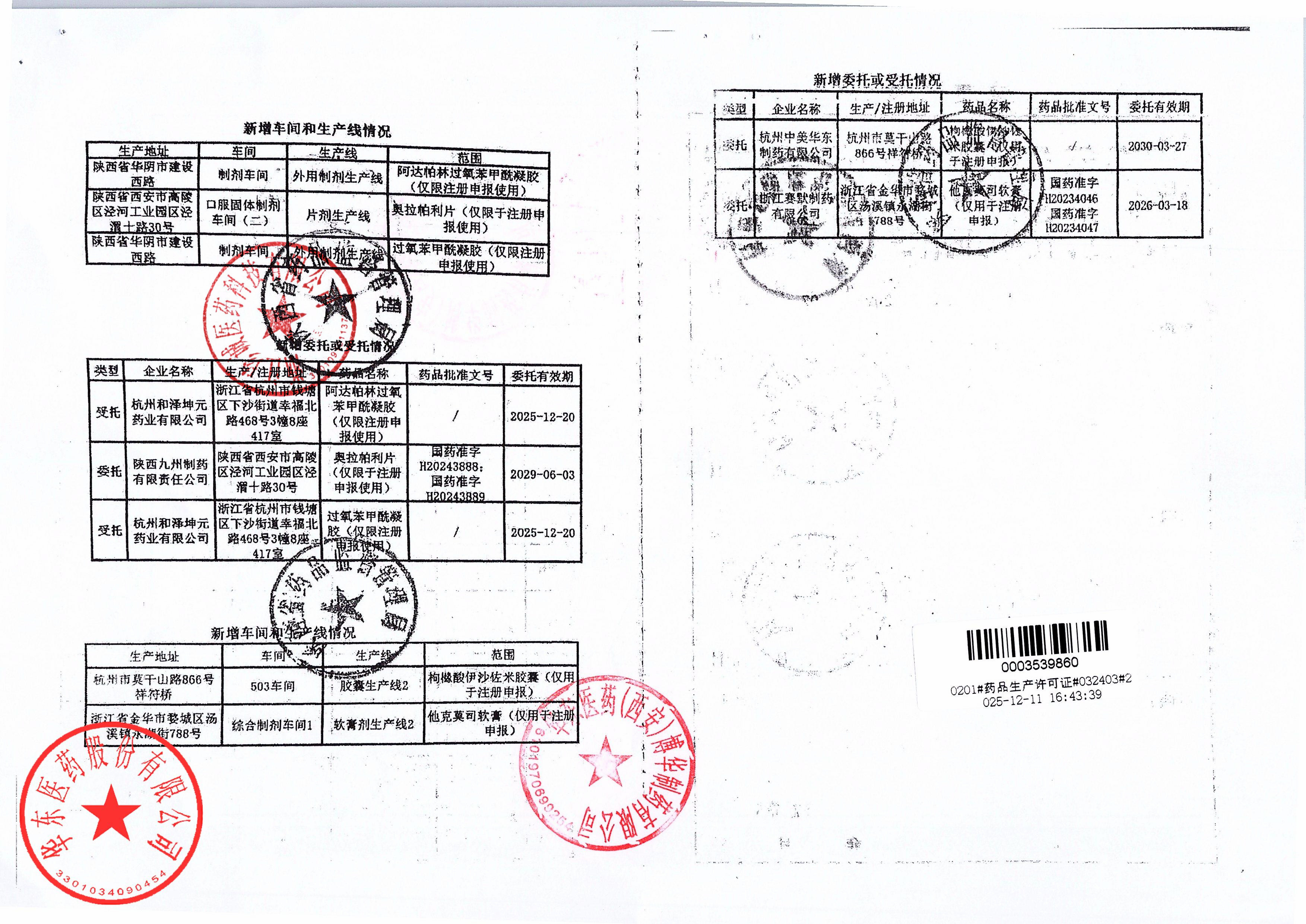 | 1 | Z99003802 | 华东医药(西安)博华制药有限公司 | 委托生产.jpg | Feb 28, 2026 1:25:05 PM | 查看下载 | |