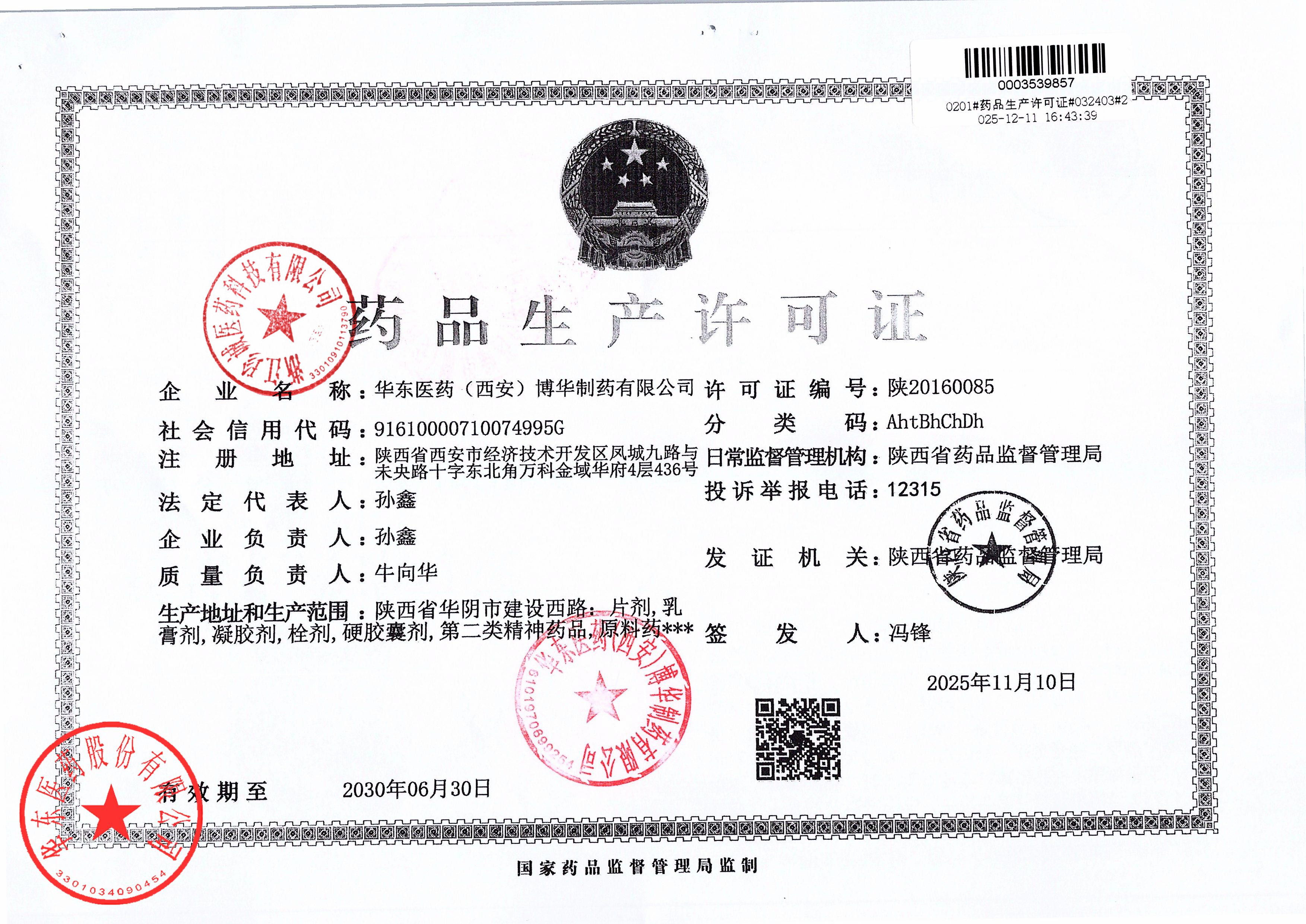 | 4 | Z99003802 | 华东医药(西安)博华制药有限公司 | 许可证 (2).jpg | Feb 28, 2026 1:25:05 PM | 查看下载 | |