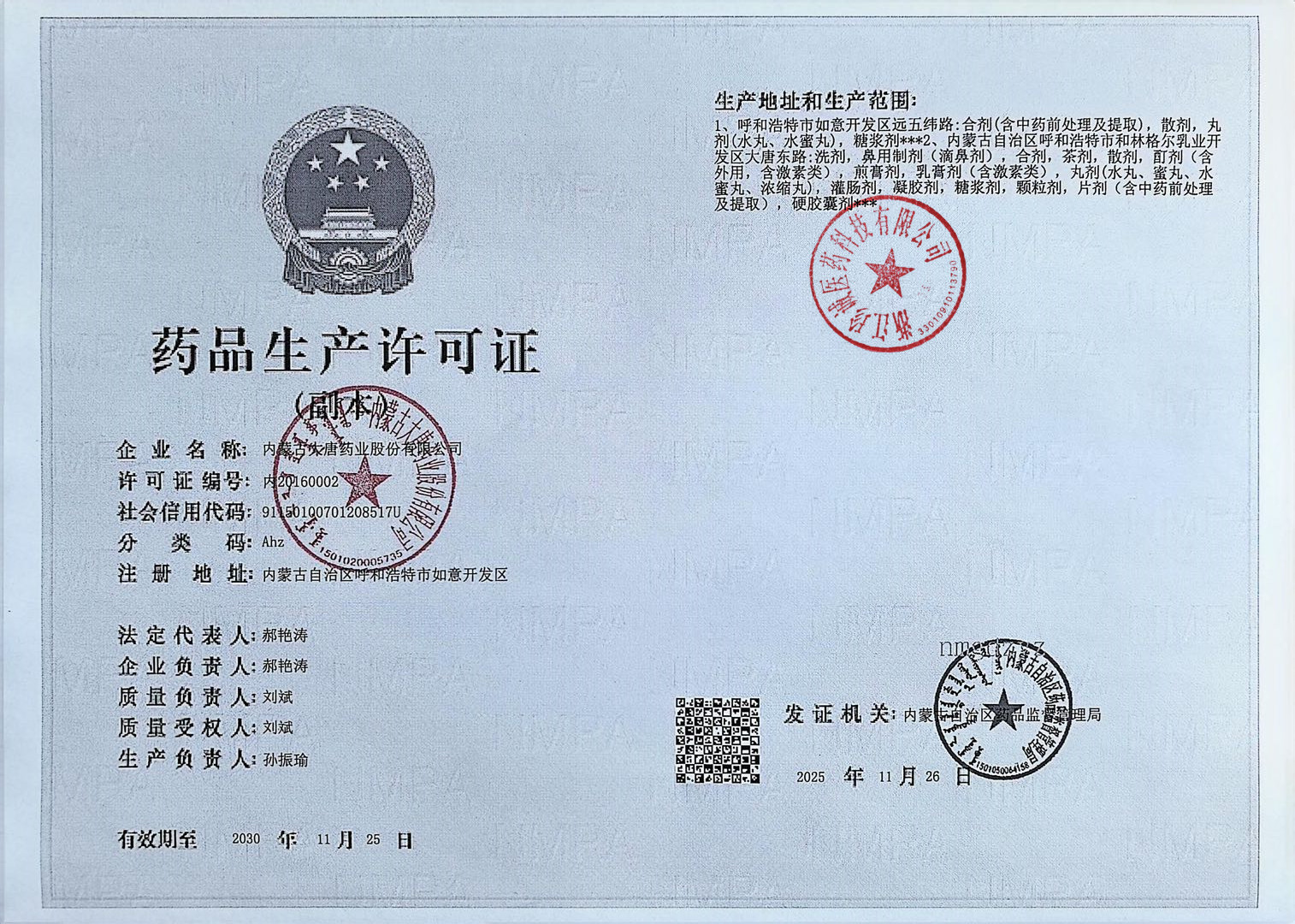 | 2 | Z99003856 | 内蒙古大唐药业股份有限公司 | 许可证 (1).jpg | Dec 3, 2025 12:00:00 AM | 查看下载 | |