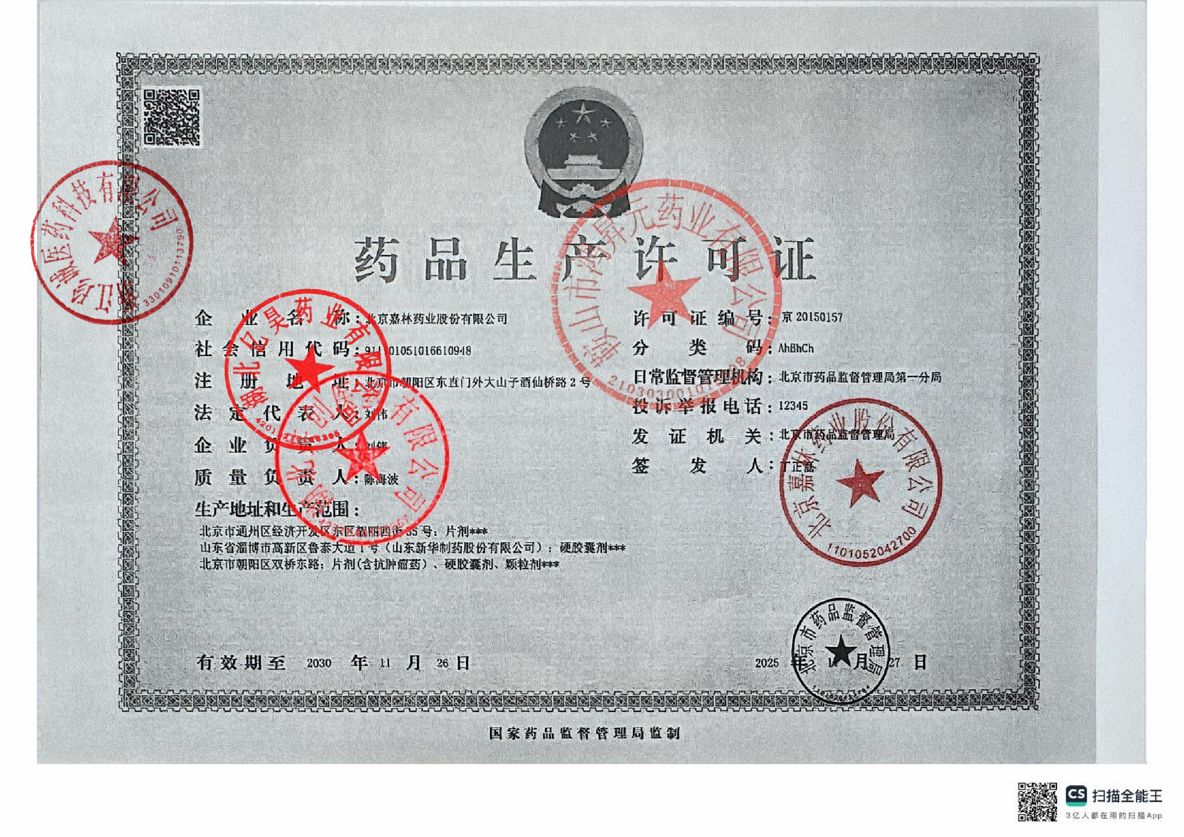 | 3 | Z99003988 | 北京嘉林药业股份有限公司 | 许可证 (2).jpg | Jan 16, 2026 10:46:39 AM | 查看下载 | |