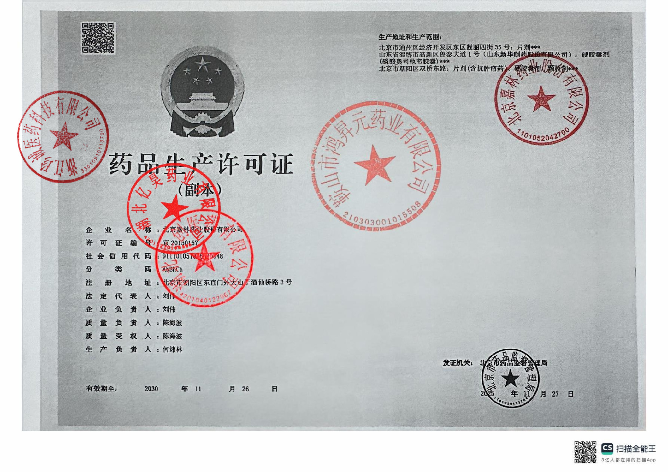 | 2 | Z99003988 | 北京嘉林药业股份有限公司 | 许可证 (1).jpg | Jan 16, 2026 10:46:39 AM | 查看下载 | |