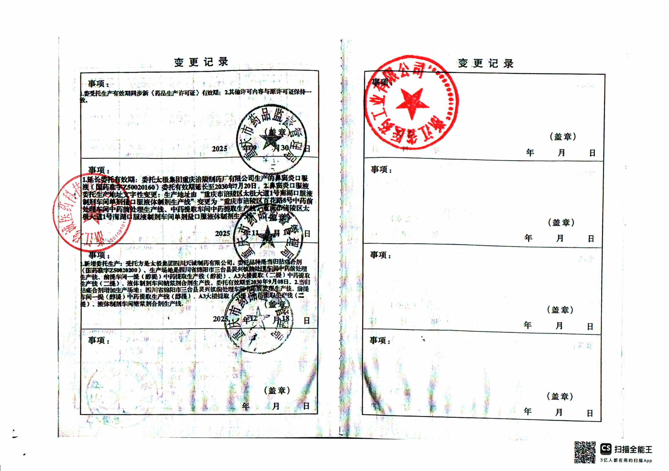 | 7 | Z99004000 | 太极集团重庆涪陵制药厂有限公司 | 变更记录 (3).jpg | Aug 25, 2025 9:34:06 AM | 查看下载 | |