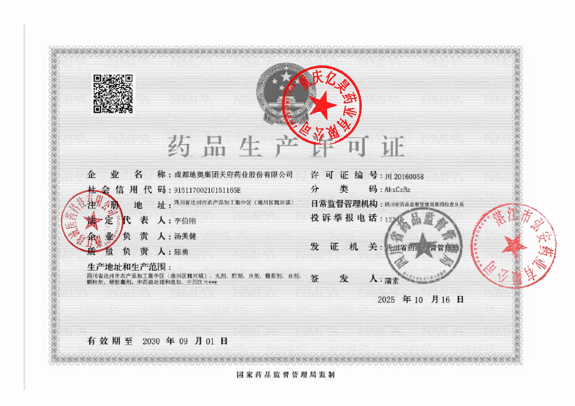 | 2 | Z99004012 | 地奥集团成都药业股份有限公司 | 许可证.jpg | Apr 16, 2026 2:32:45 PM | 查看下载 | |