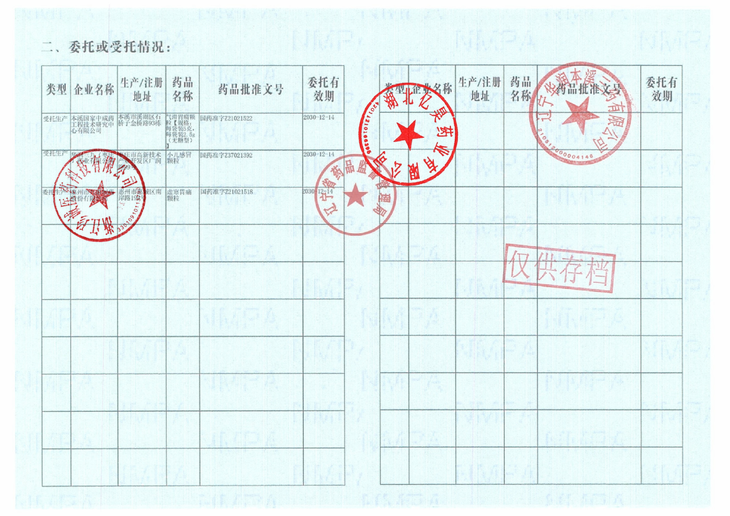 | 2 | Z99004048 | 辽宁华润本溪三药有限公司 | 委托生产.jpg | Jan 15, 2026 9:12:35 AM | 查看下载 | |