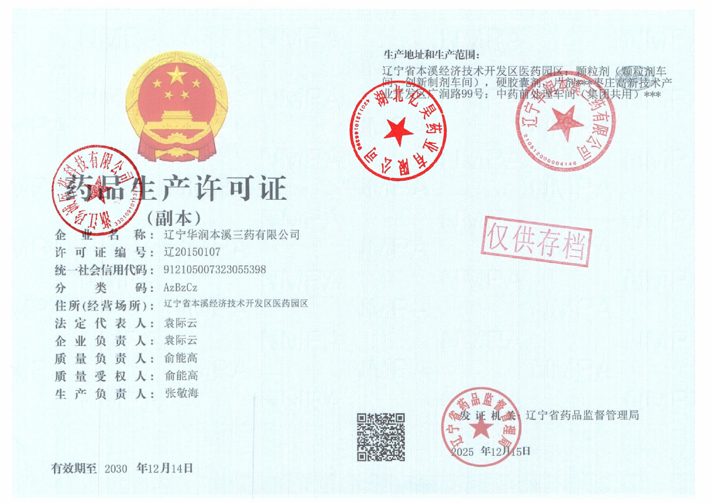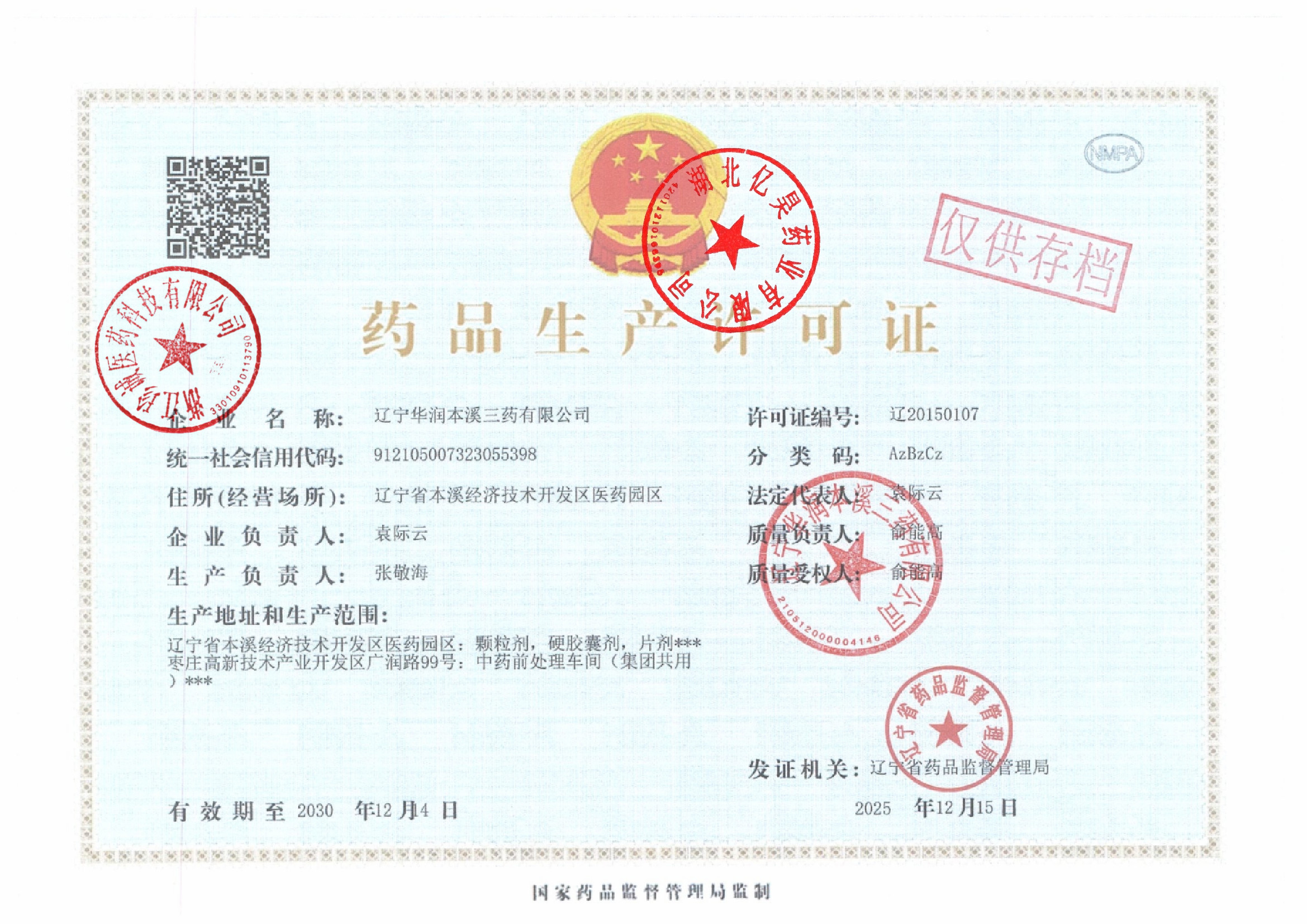 | 5 | Z99004048 | 辽宁华润本溪三药有限公司 | 营业执照.jpg | Sep 28, 2025 4:29:22 PM | 查看下载 |