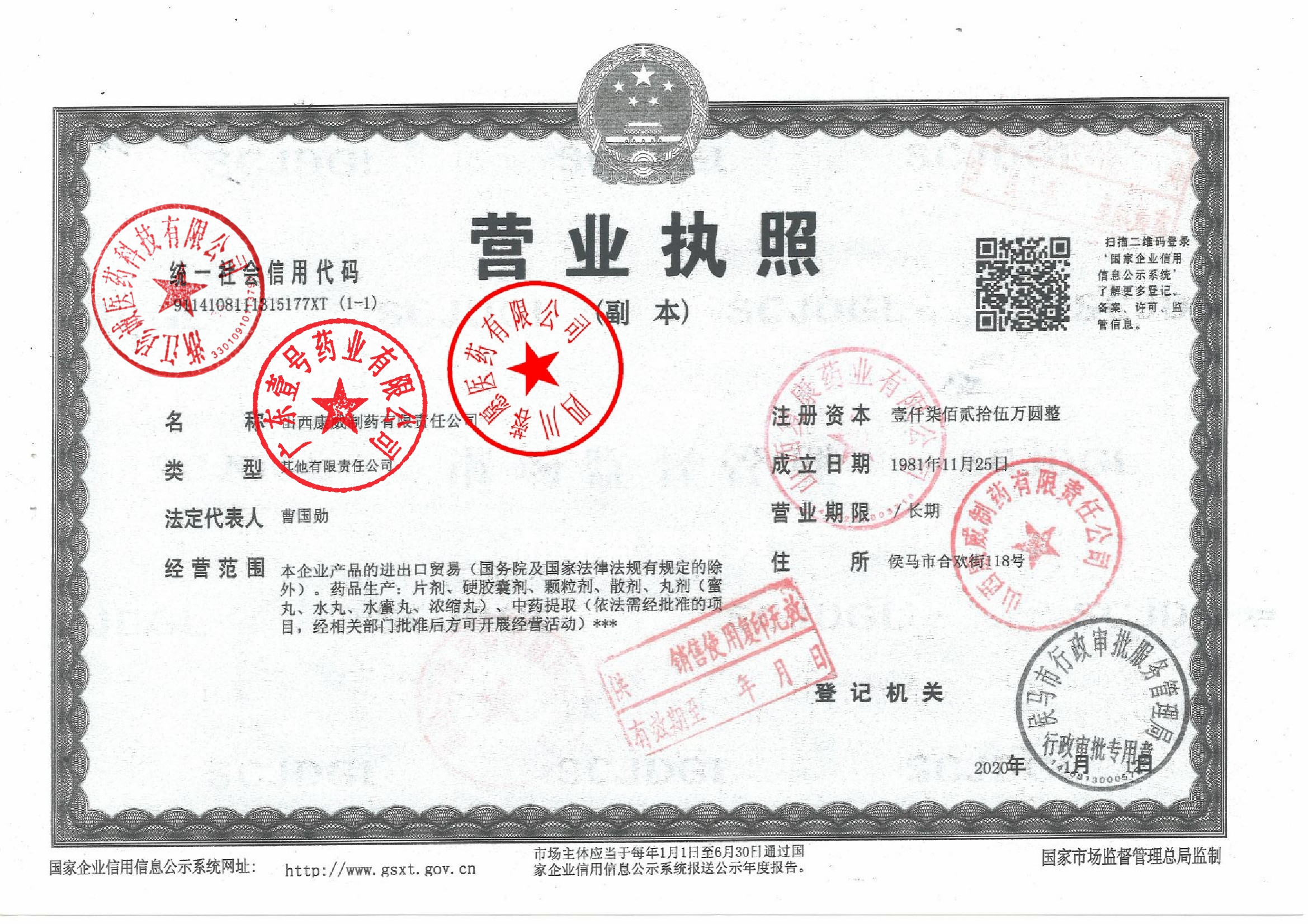 山西康威制药有限责任公司