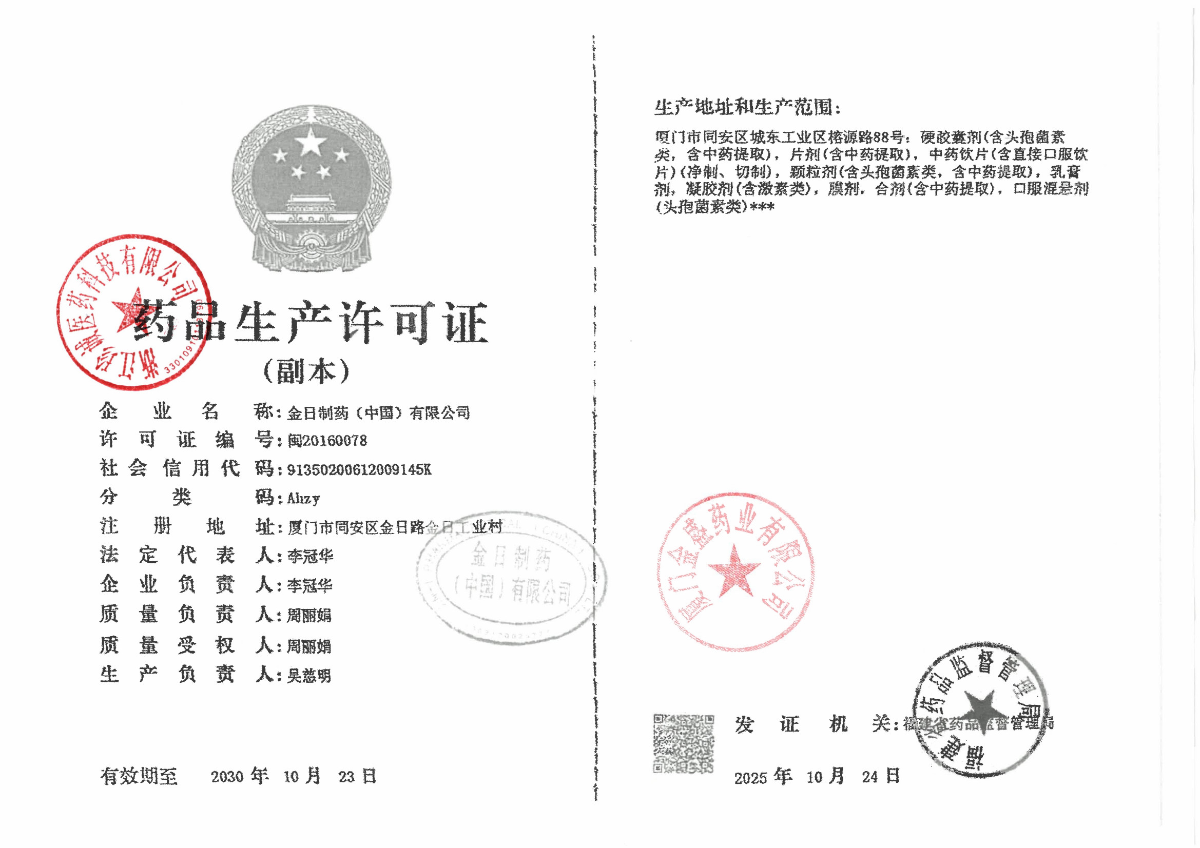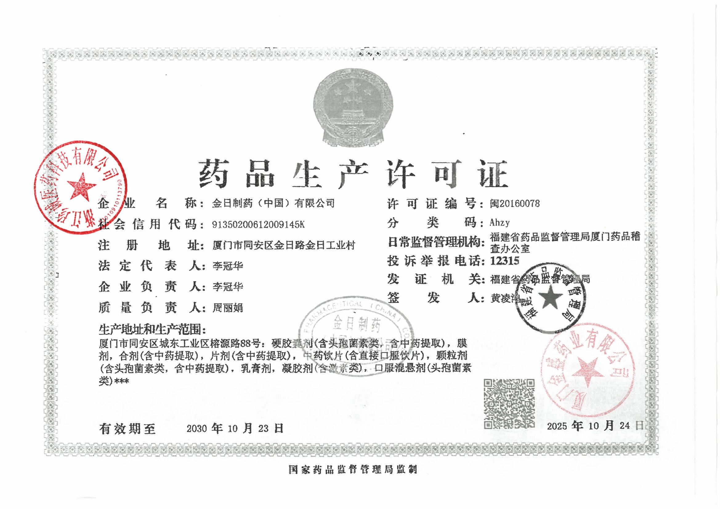 | 3 | Z99004194 | 金日制药(中国)有限公司 | 药品生产许可证正本.jpg | Oct 31, 2024 12:00:00 AM | 查看下载 | |