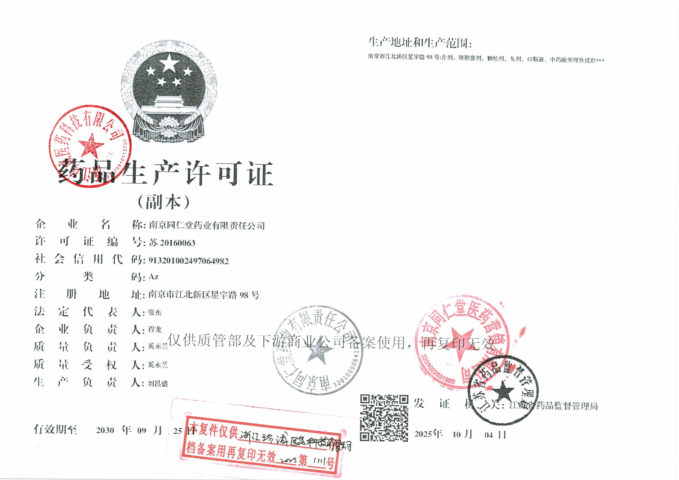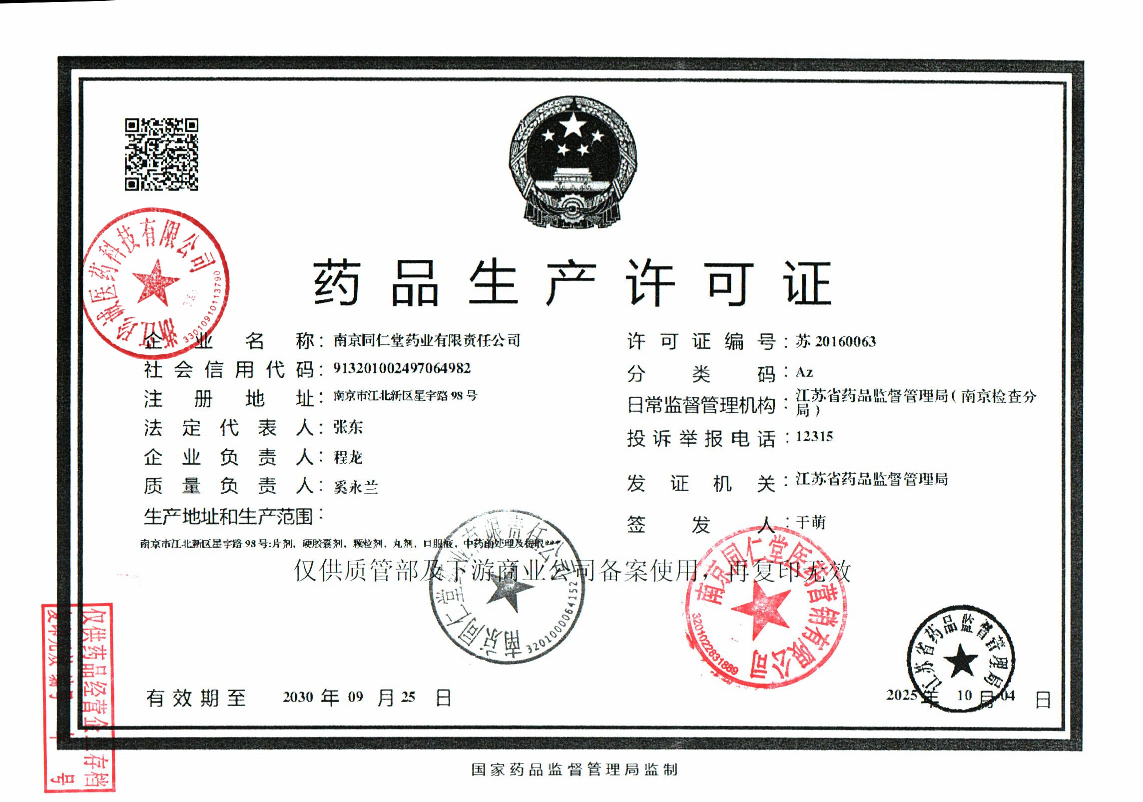 | 3 | Z99004208 | 南京同仁堂药业有限责任公司 | 许可证.jpg | Oct 27, 2025 1:34:17 PM | 查看下载 | |