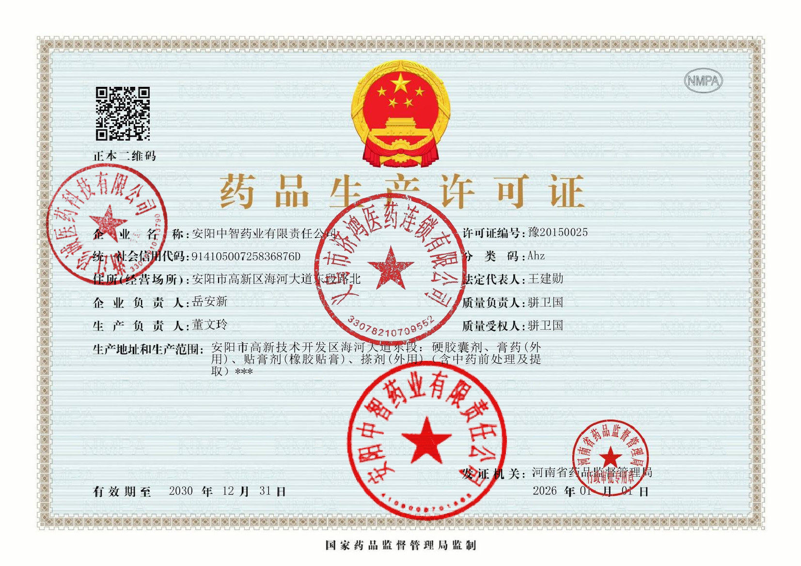 | 3 | Z99004446 | 安阳中智药业有限责任公司 | 许可证 (1).jpg | Jan 29, 2026 4:41:25 PM | 查看下载 | |