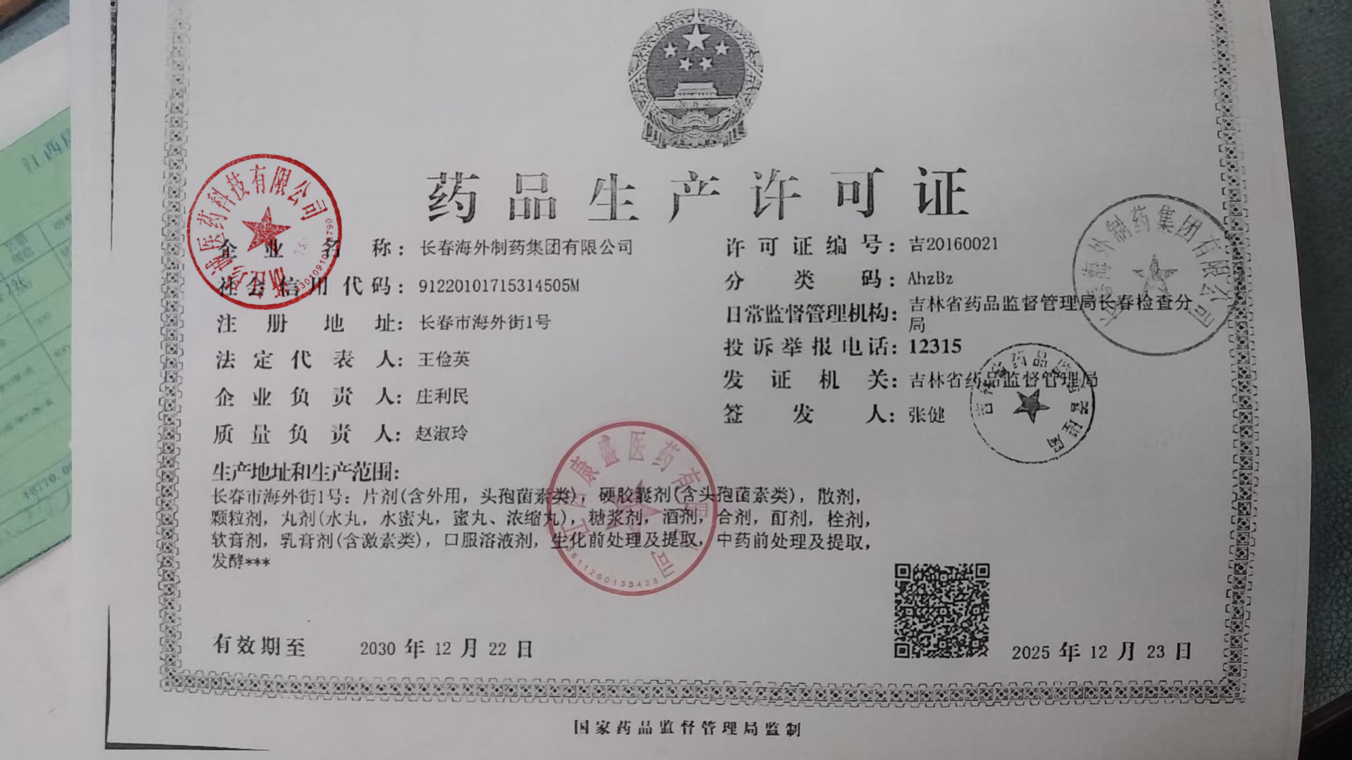 | 2 | Z99004514 | 长春海外制药集团有限公司 | 许可证.jpg | Jan 15, 2026 2:58:04 PM | 查看下载 | |