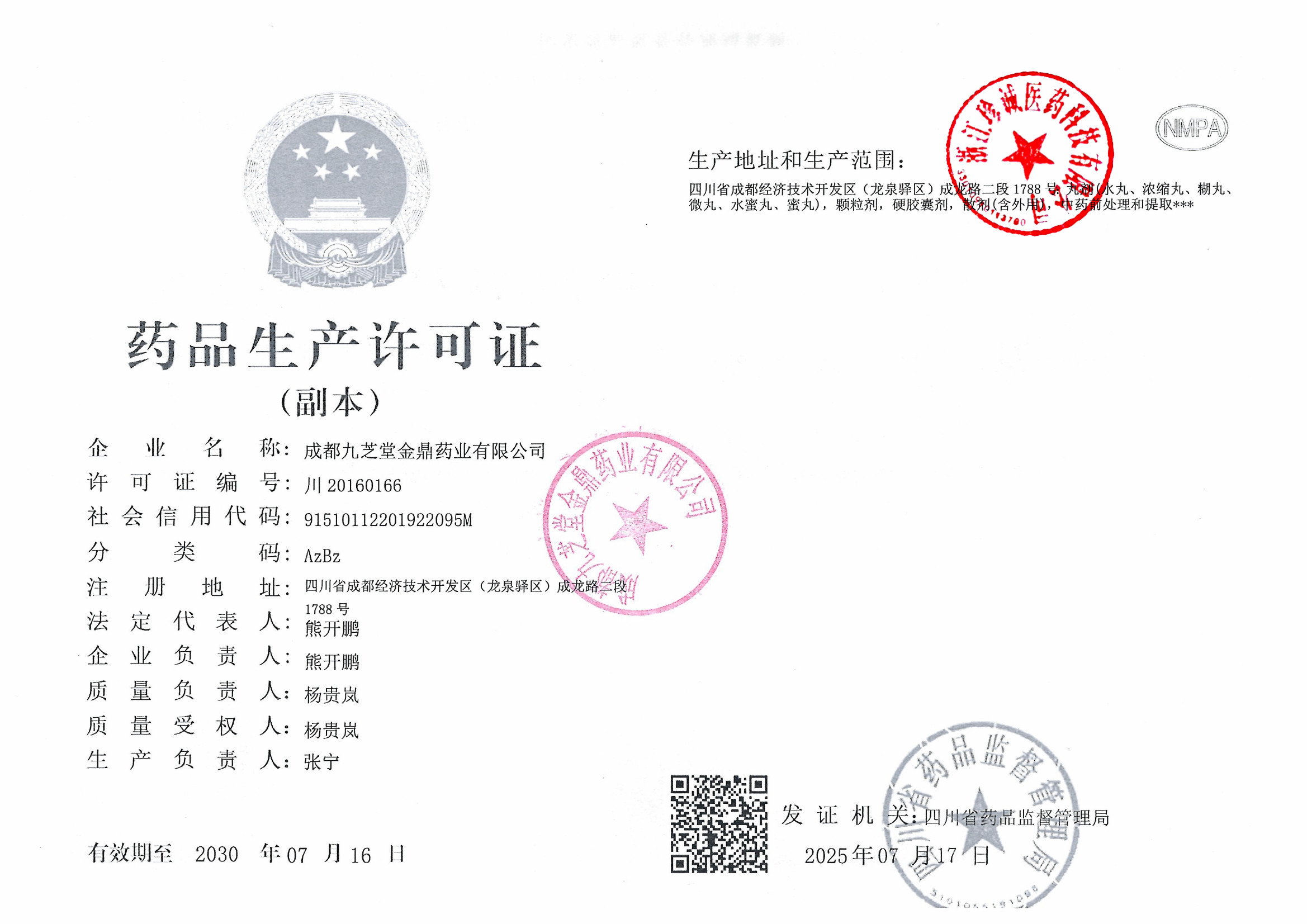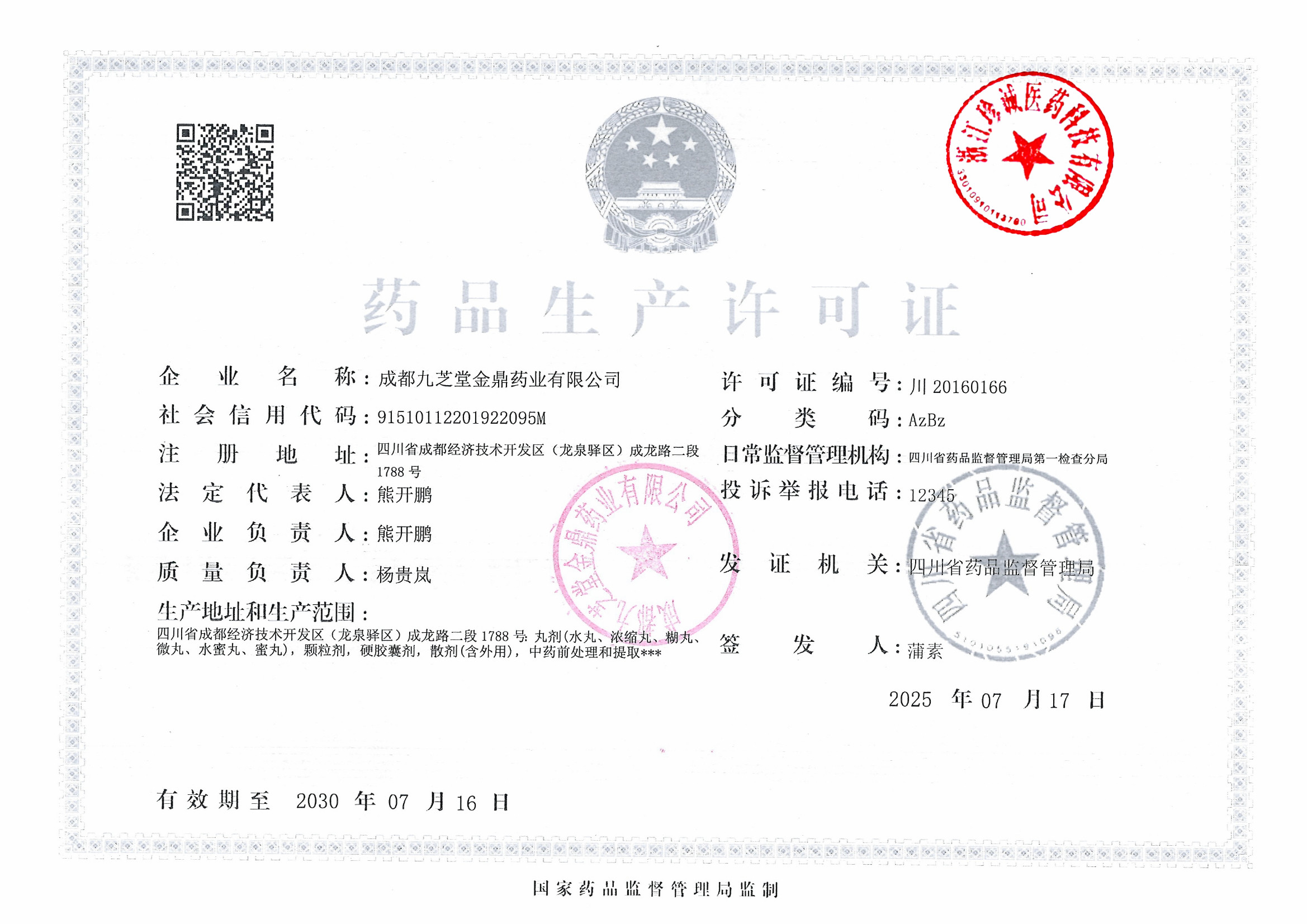 4 | Z99004518 | 成都九芝堂金鼎药业有限公司 | 药品生产许可证 (2).jpg | Sep 15, 2025 4:15:20 PM | 查看下载 | |
