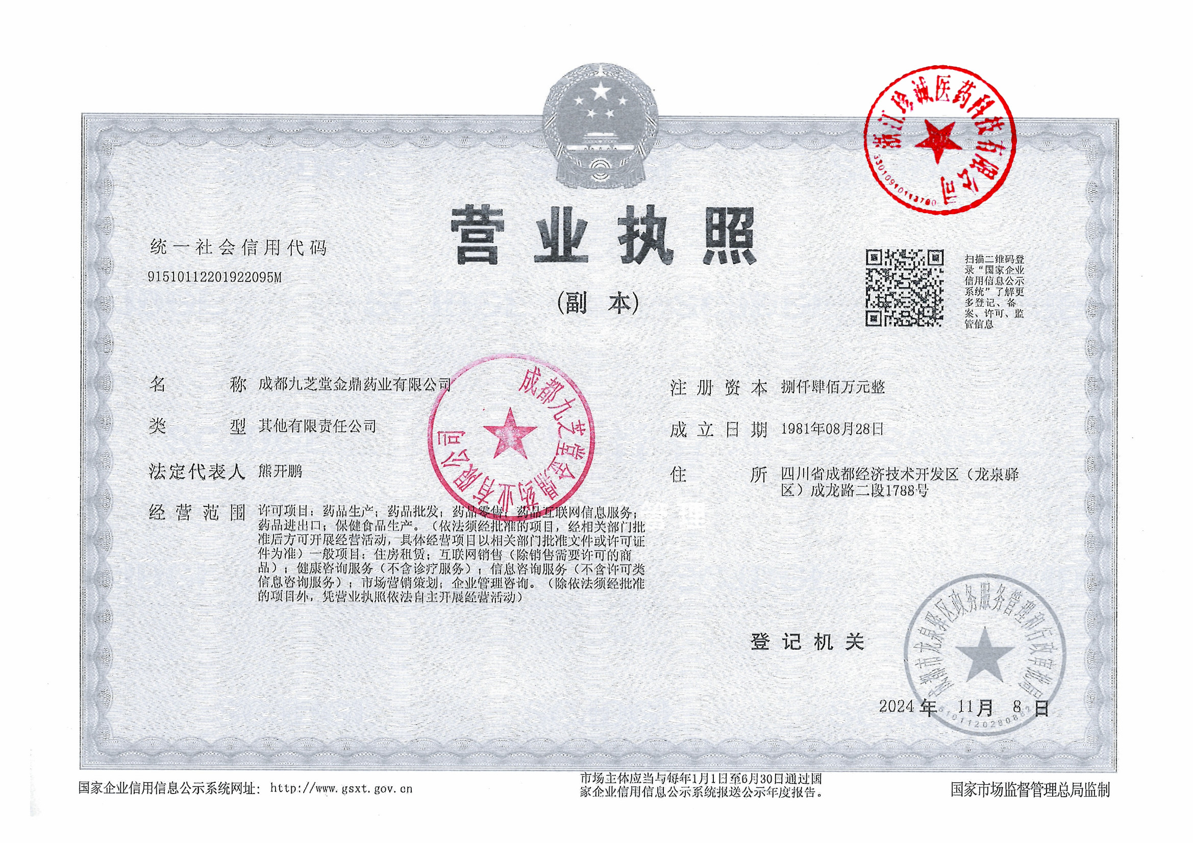 2 | Z99004518 | 成都九芝堂金鼎药业有限公司 | 营业执照 (2).jpg | Sep 15, 2025 4:15:20 PM | 查看下载 | |
