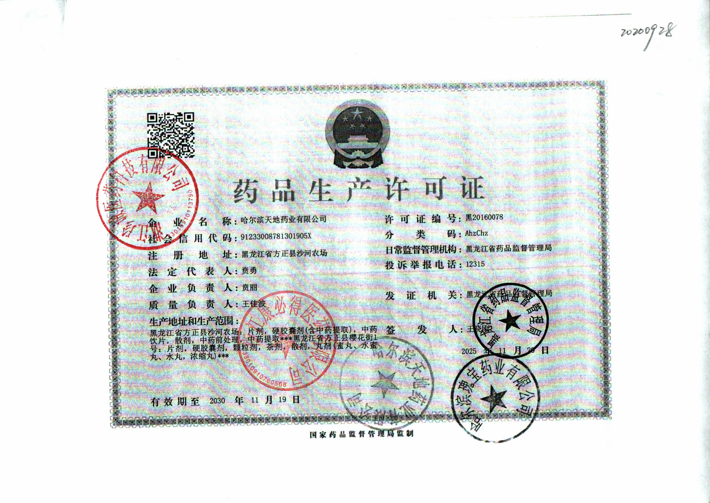 9 Z99004532 哈尔滨天地药业有限公司 药品生产许可 (1).jpg Feb 3, 2026 3:24:41 PM 查看下载