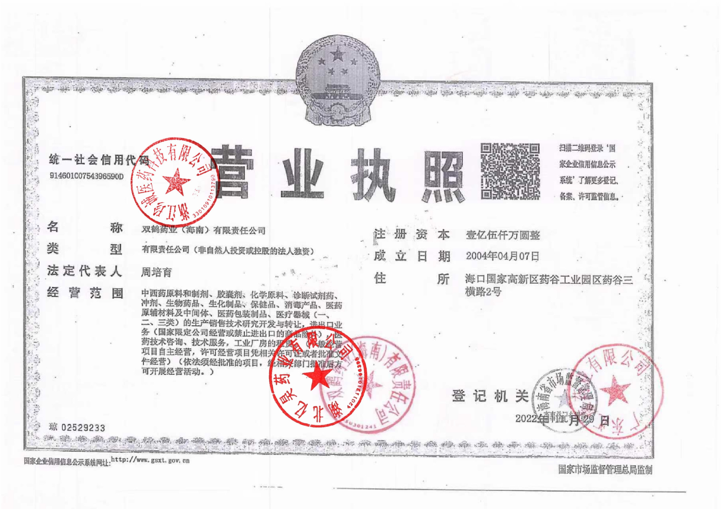 2 Z99004656 双鹤药业(海南)有限责任公司(原海南中化联合制药工业股份有限公司) 营业执照0001.jpg Nov 14, 2025 9:50:06 AM 查看下载