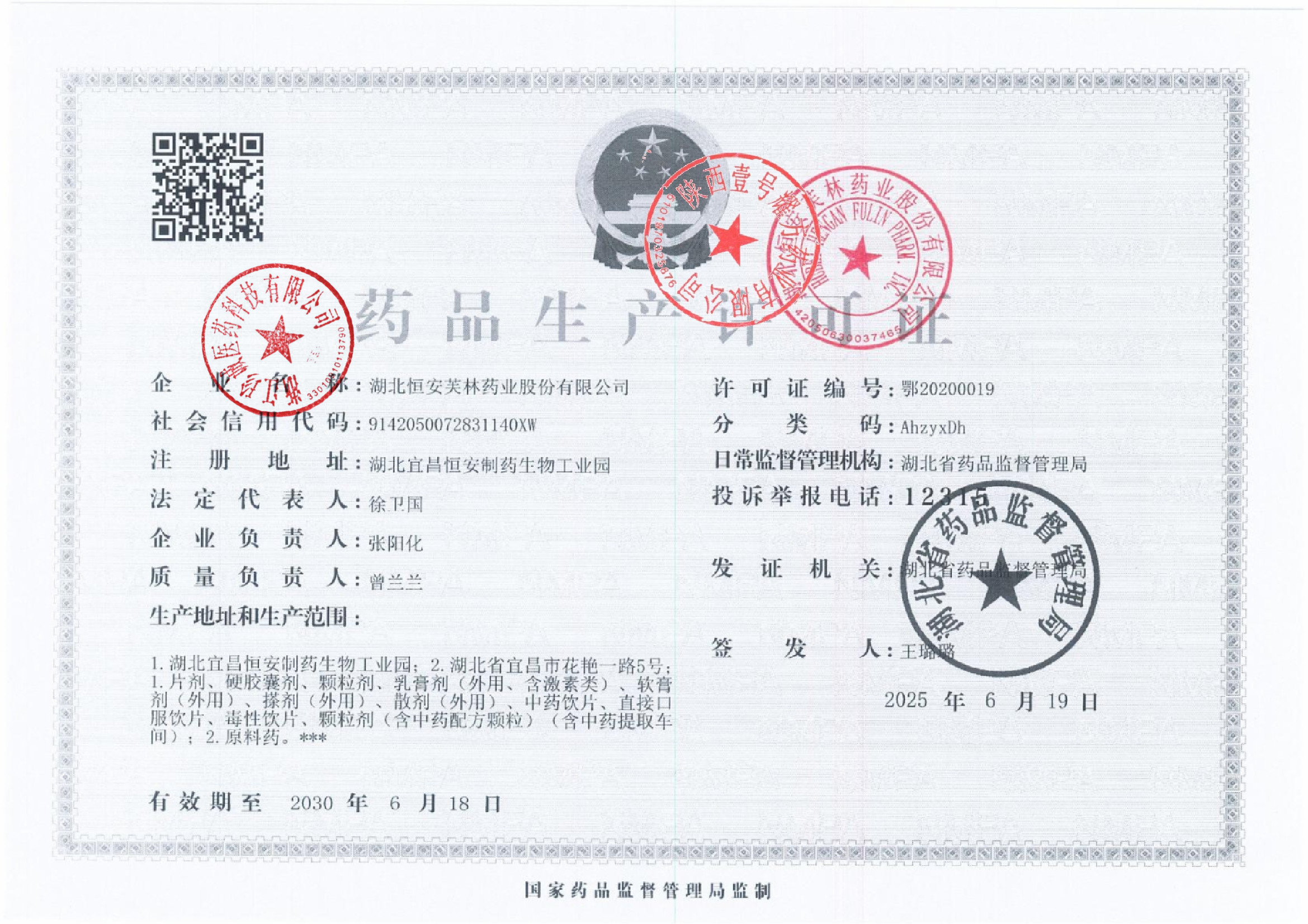 | 1 | Z99004658 | 湖北恒安芙林药业股份有限公司 | 药品生产许可证0004.jpg | Nov 13, 2025 1:56:22 PM | 查看下载 | |