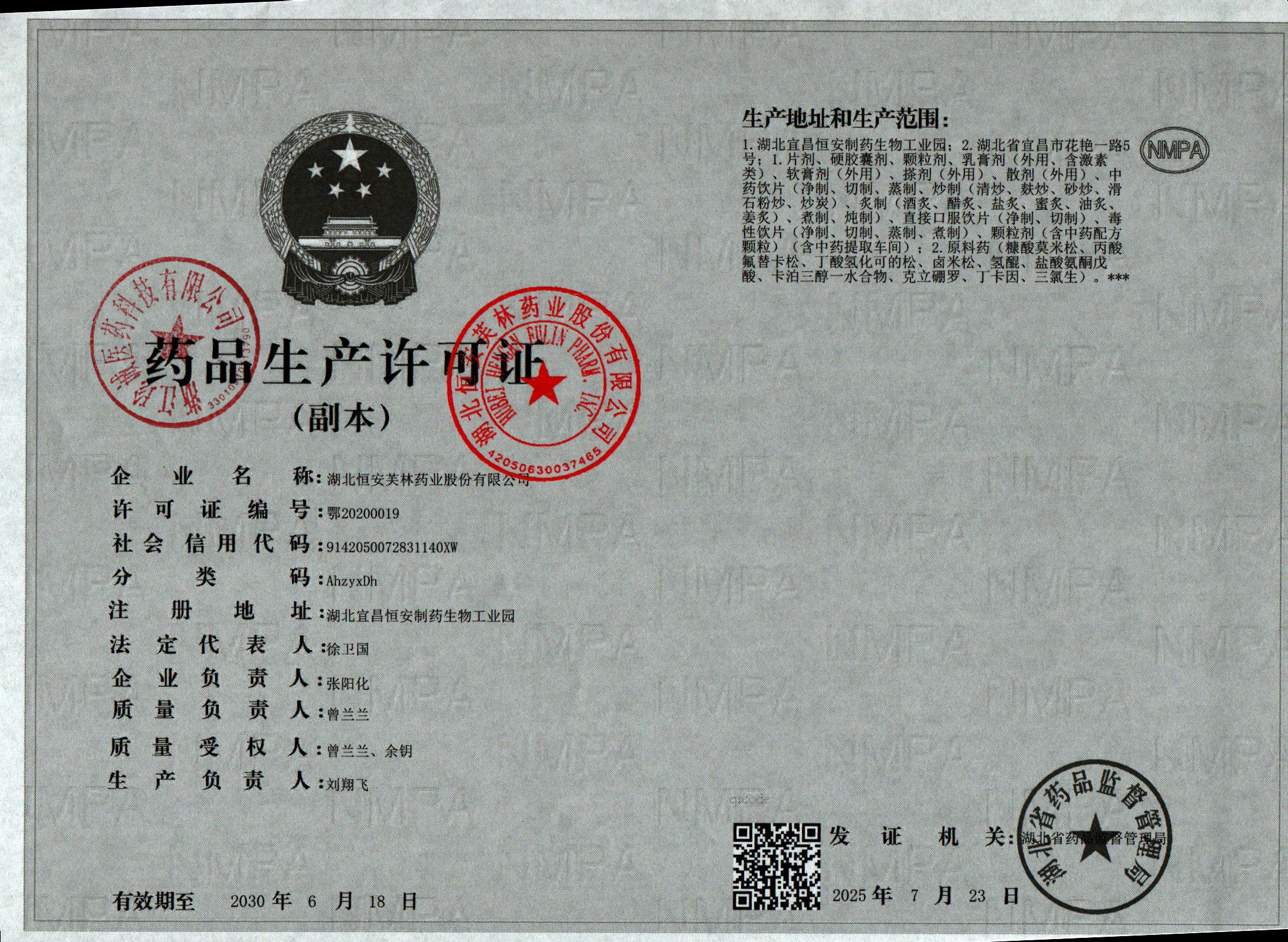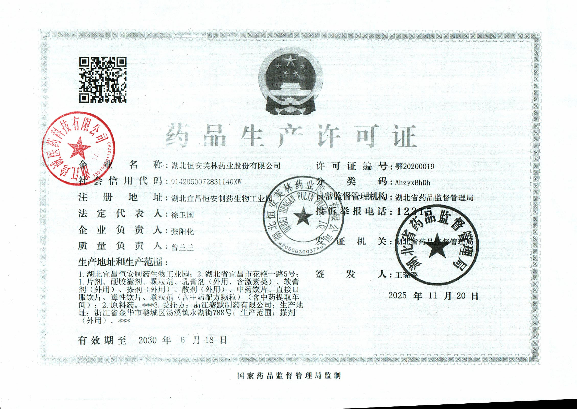 | 4 | Z99004658 | 湖北恒安芙林药业股份有限公司 | 许可证 (1).jpg | Feb 3, 2026 9:11:29 AM | 查看下载 | |