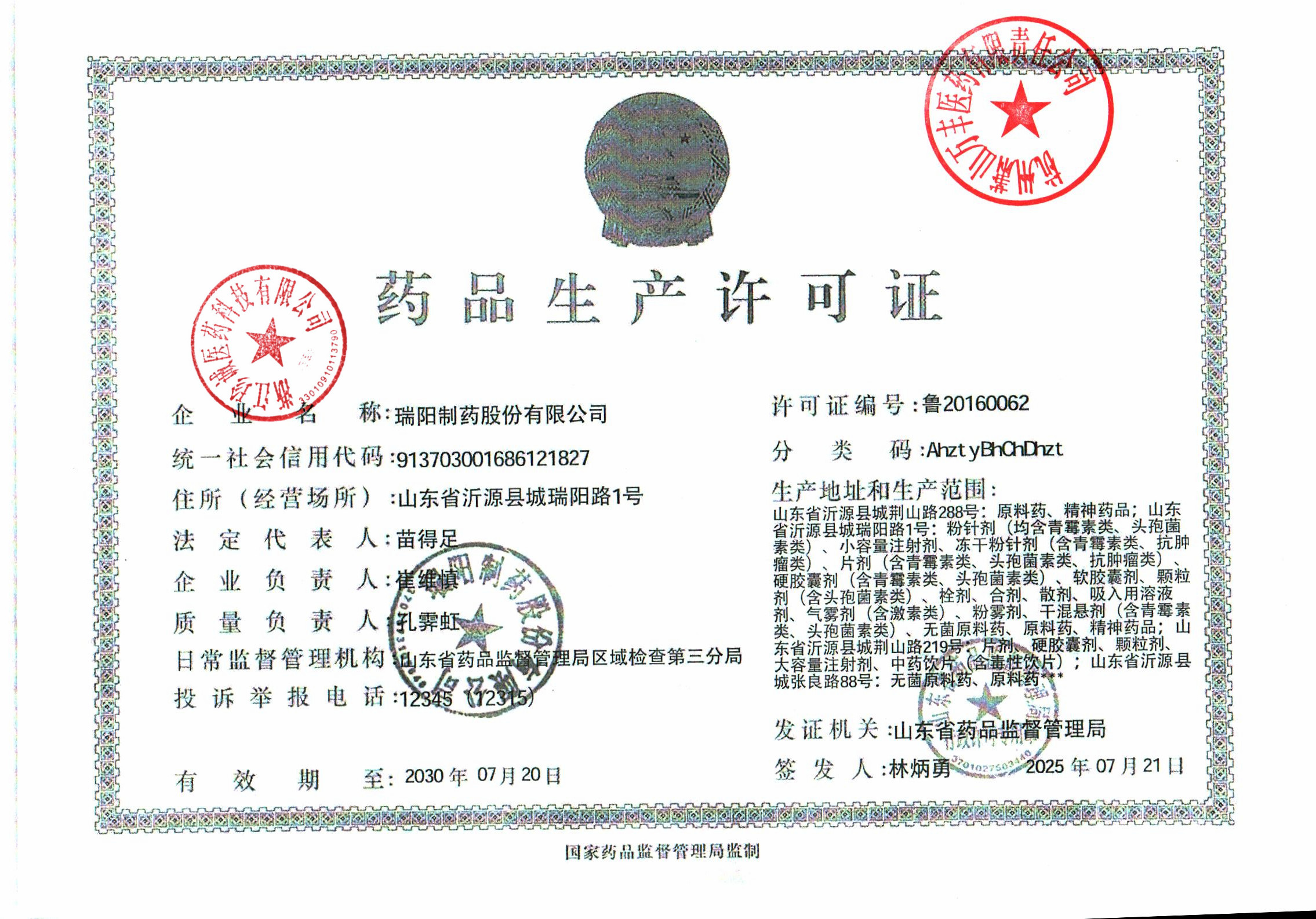 2 Z99004714 瑞阳制药股份有限公司(原瑞阳制药有限公司) 许可证.jpg Nov 21, 2025 1:33:00 PM 查看下载