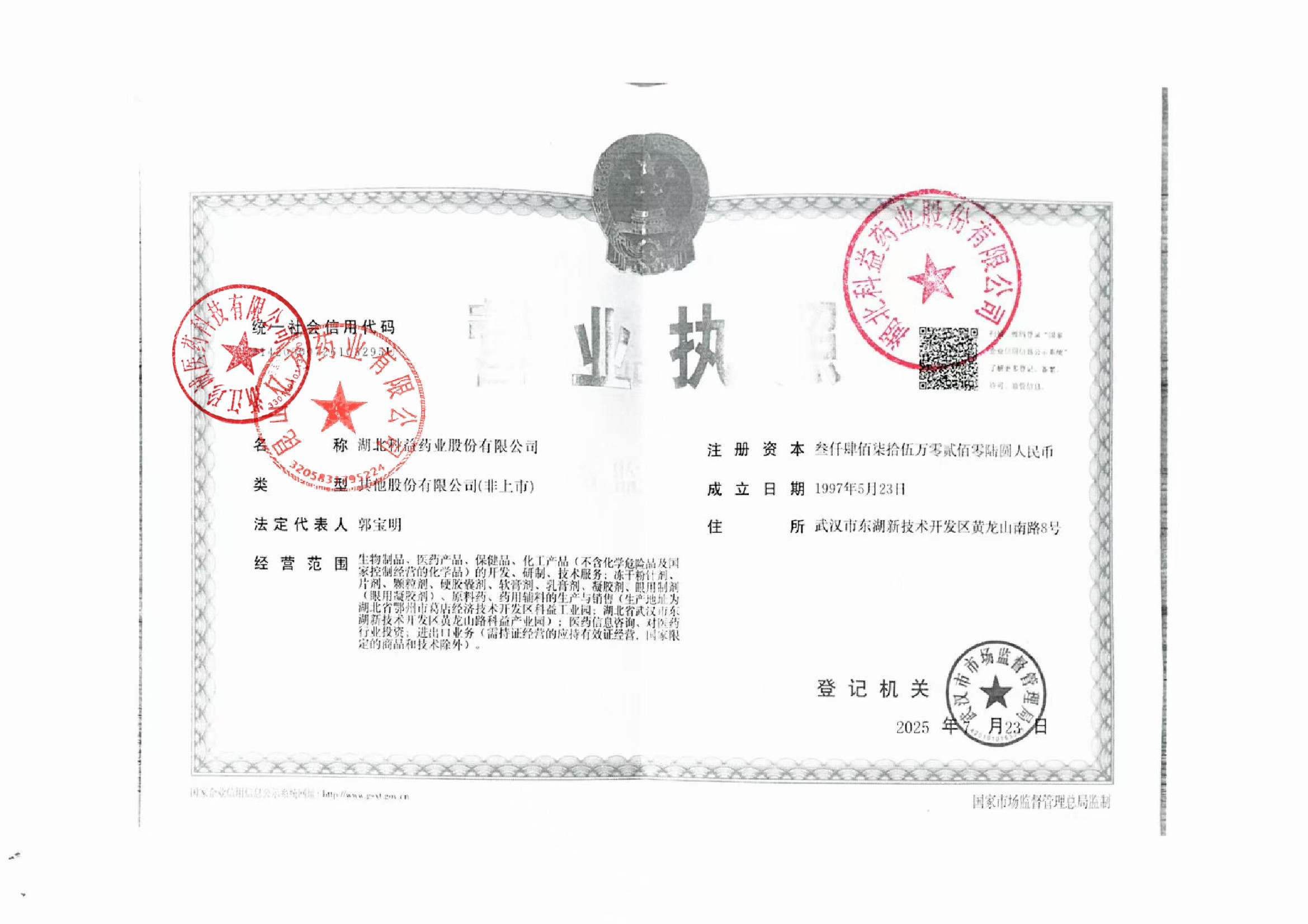 3 Z99007381 湖北科益药业股份有限公司 变更记录 (1).jpg Jul 18, 2025 9:53:30 AM 查看下载