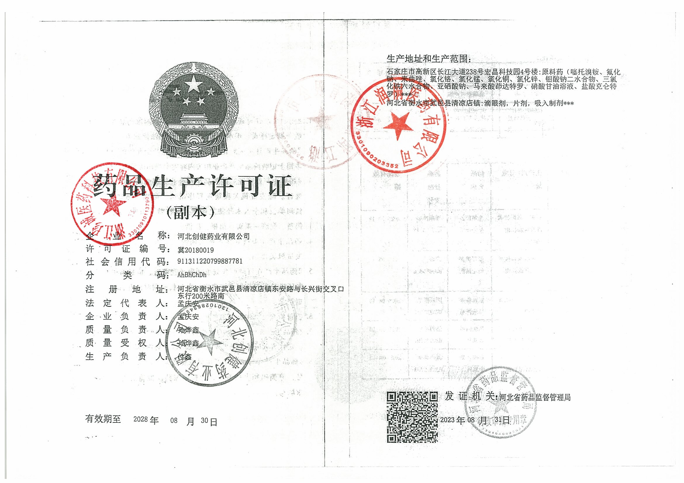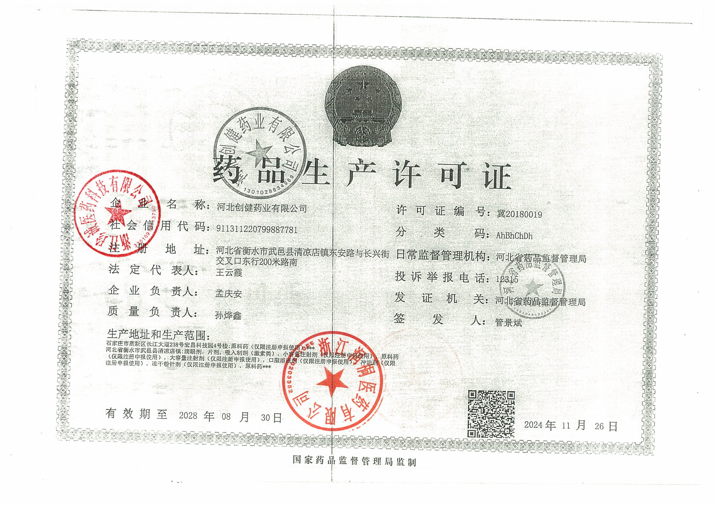 | 2 | Z99007441 | 河北创健药业有限公司 | 许可证 (2).jpg | Dec 10, 2025 4:54:11 PM | 查看下载 | |