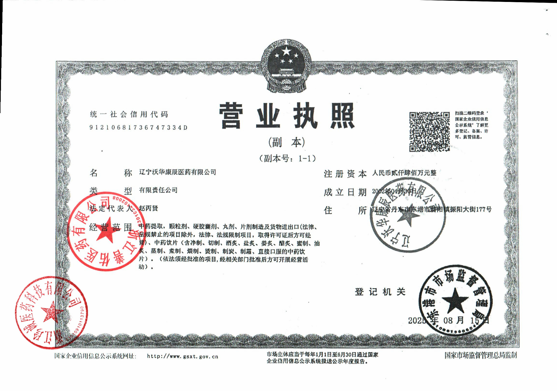 | 5 | Z99007500 | 辽宁沃华康辰医药有限公司 | 营业执照.jpg | Feb 4, 2026 2:05:51 PM | 查看下载 |