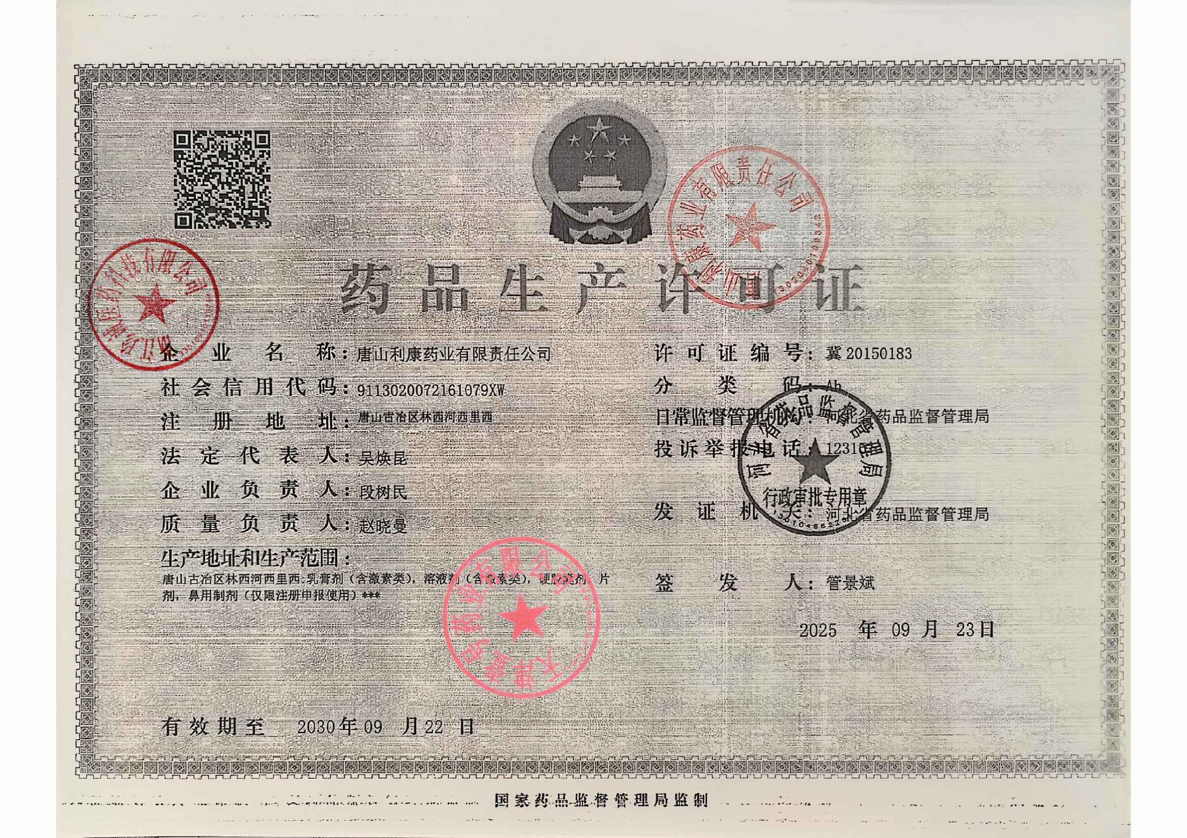 唐山利康药业有限责任公司