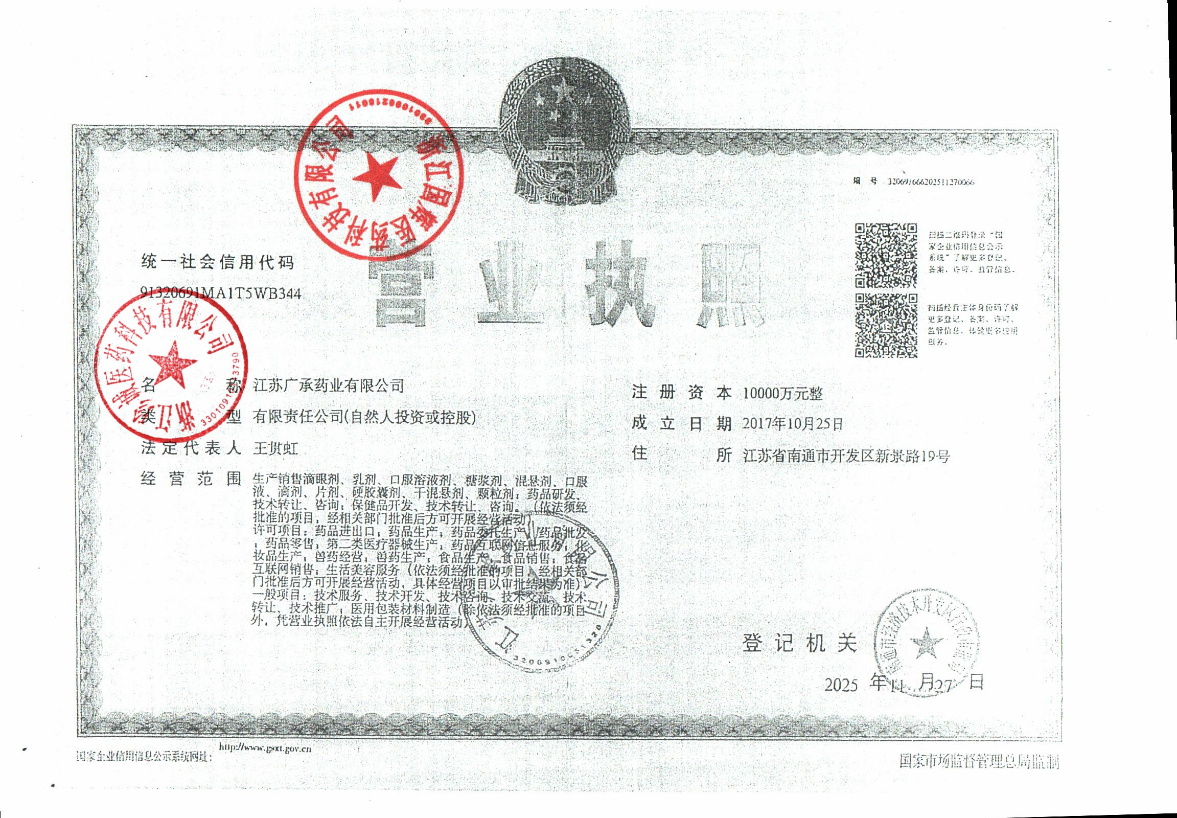 1 Z99007765 江苏广承药业有限公司 营业执照.jpg Mar 18, 2026 1:52:44 PM 查看下载