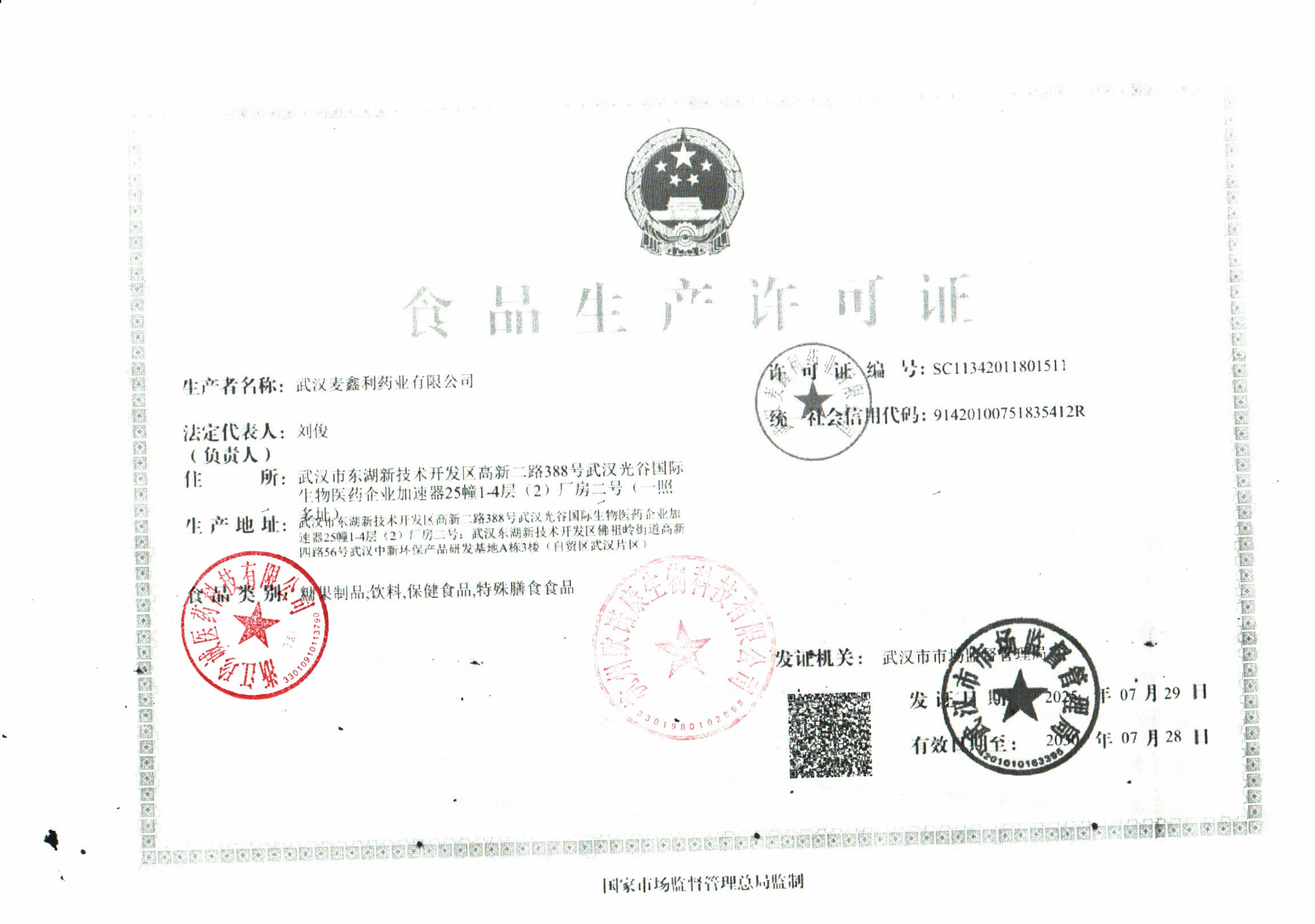 | 2 | Z99008163 | 武汉麦鑫利药业有限公司 | 食品生产许可证.jpg | Nov 12, 2025 1:36:02 PM | 查看下载 | |