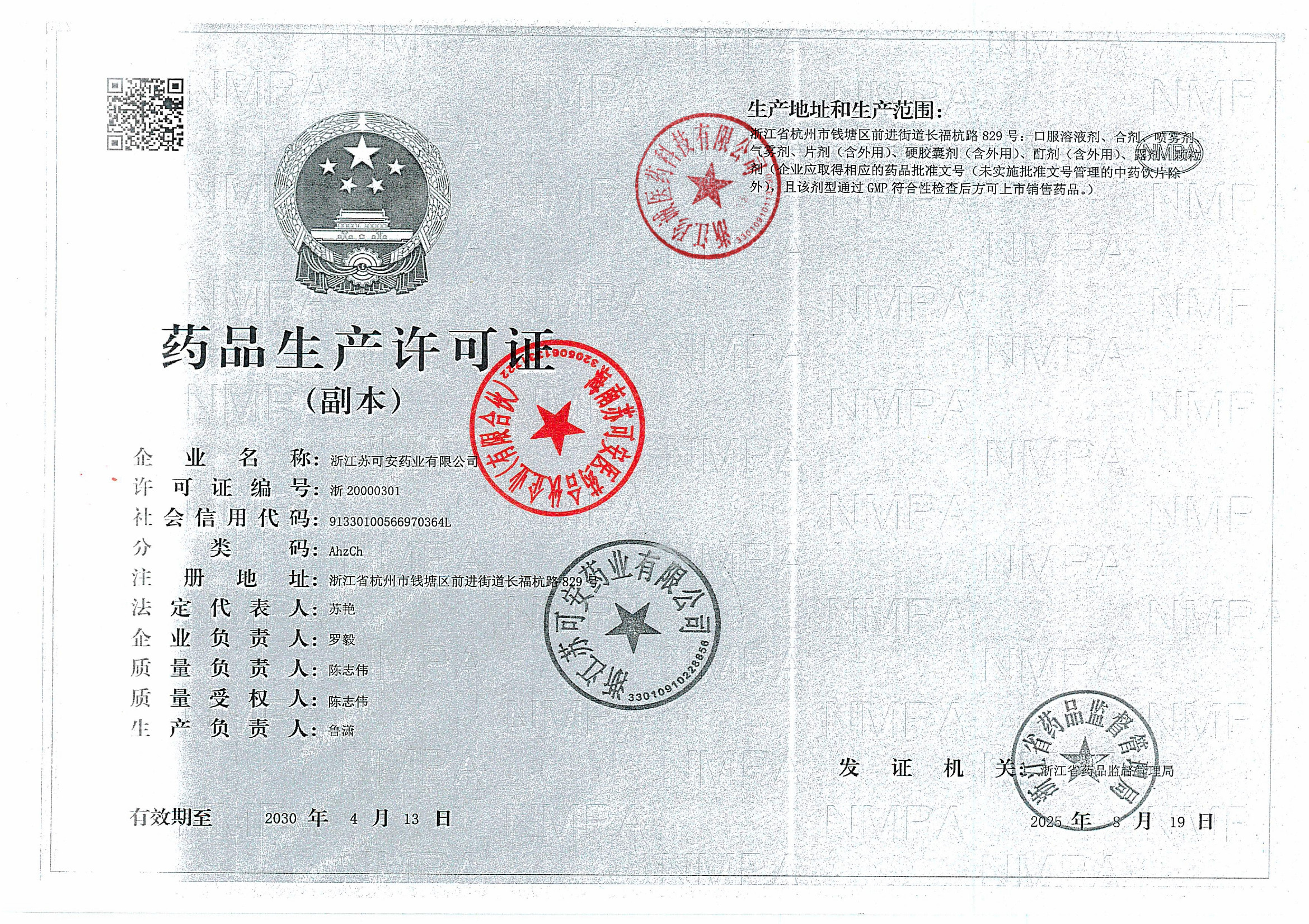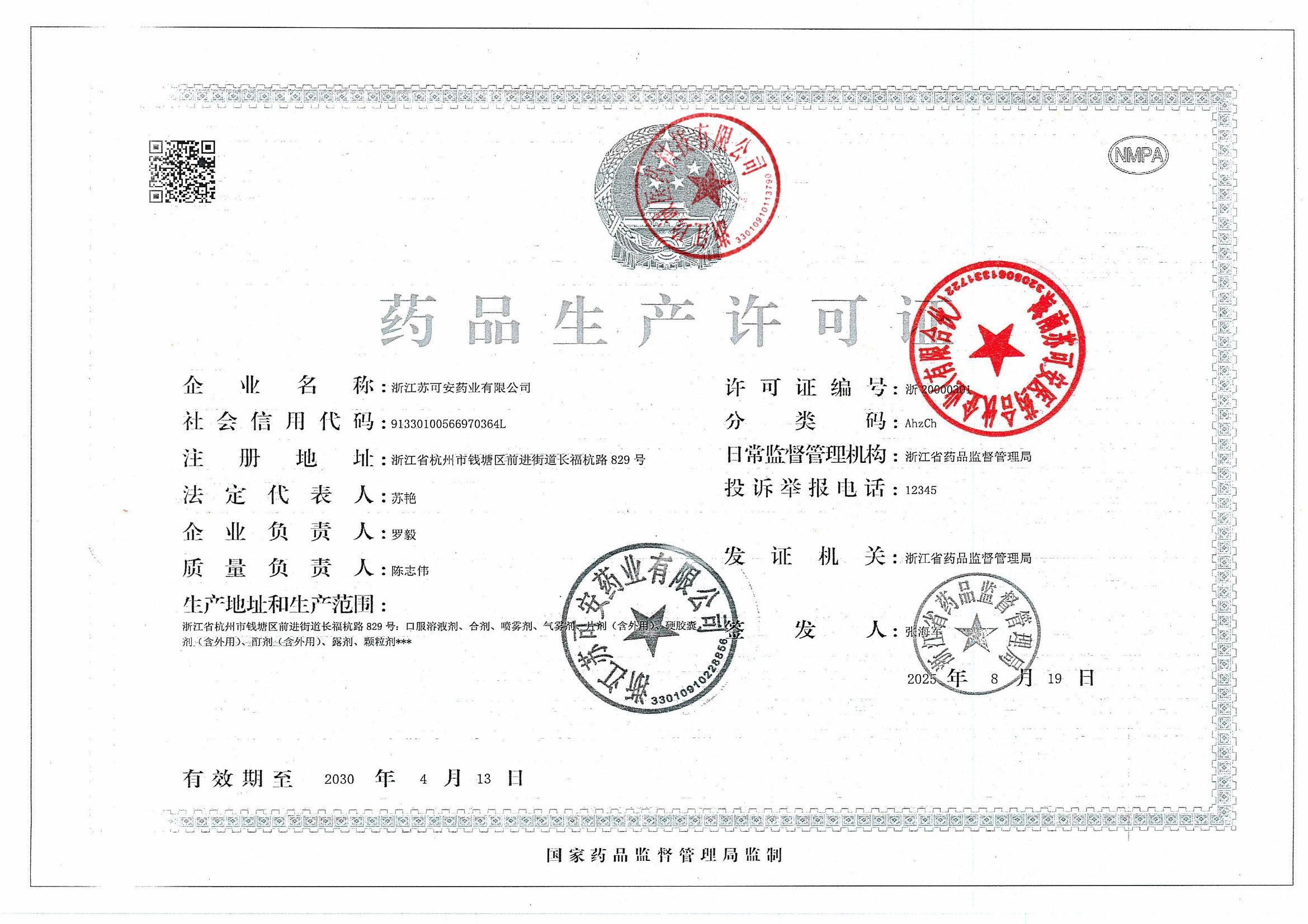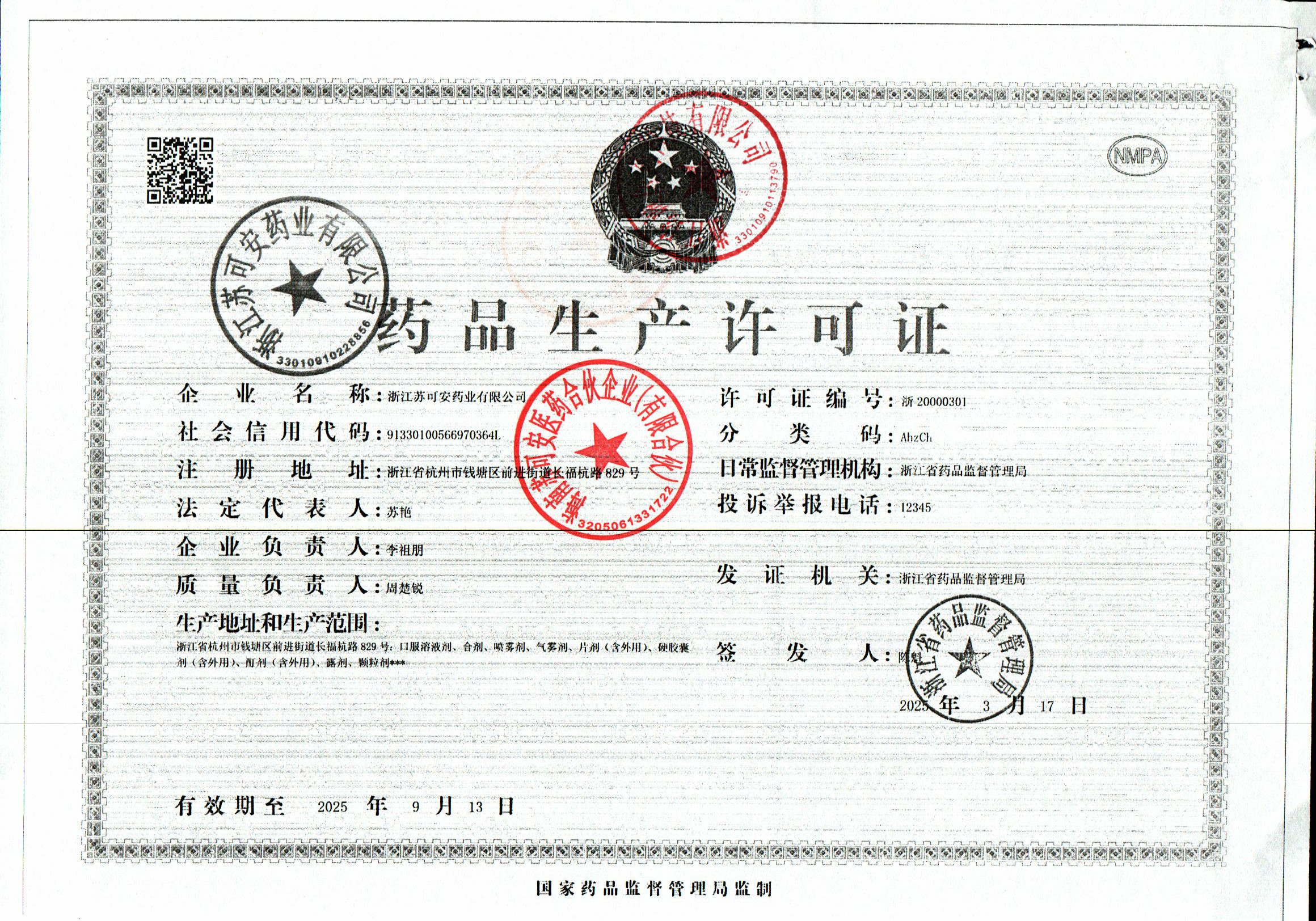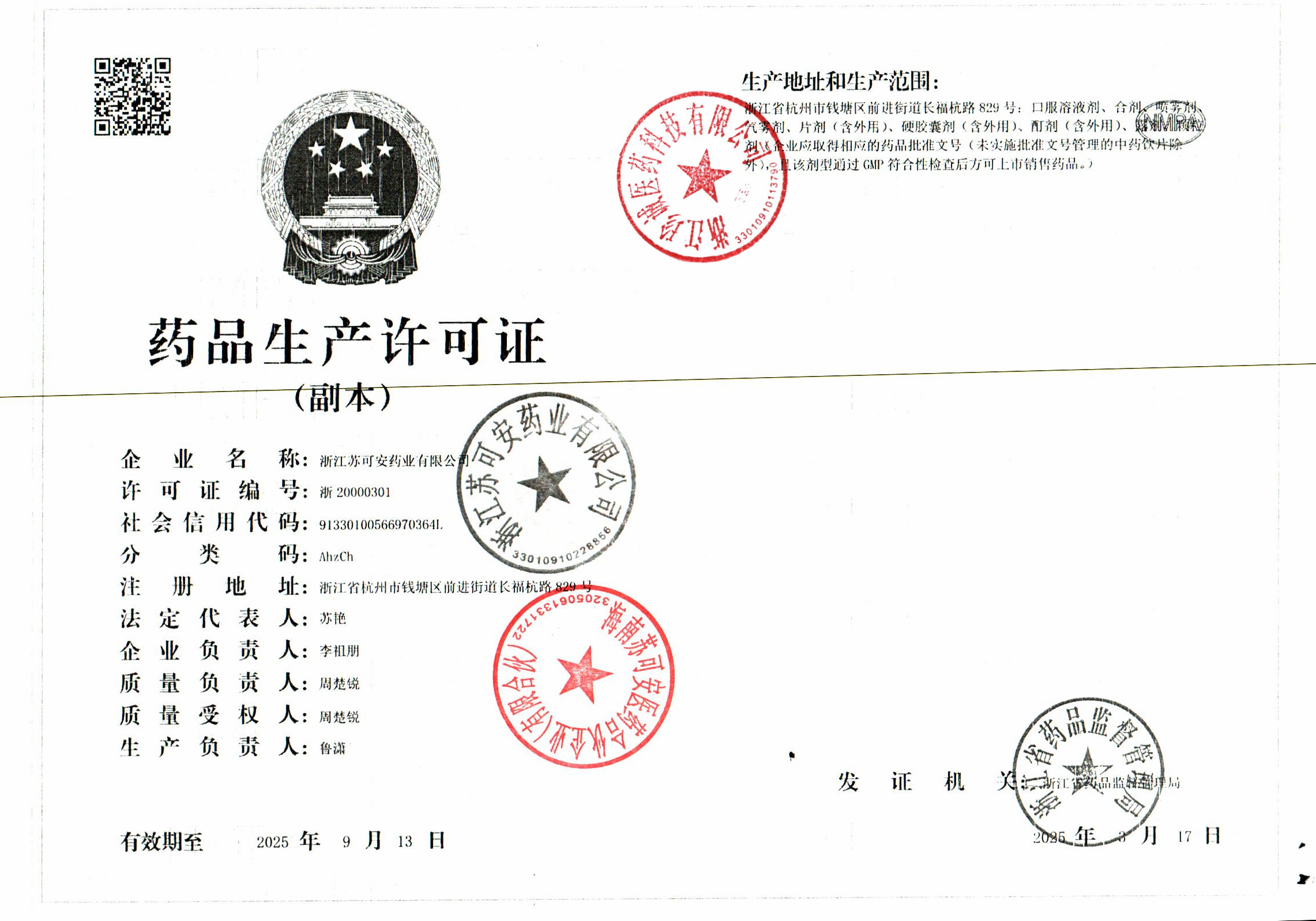 1 Z99008780 浙江苏可安药业有限公司 新药品生产许可证 (2).jpg Oct 17, 2025 10:50:51 AM 查看下载