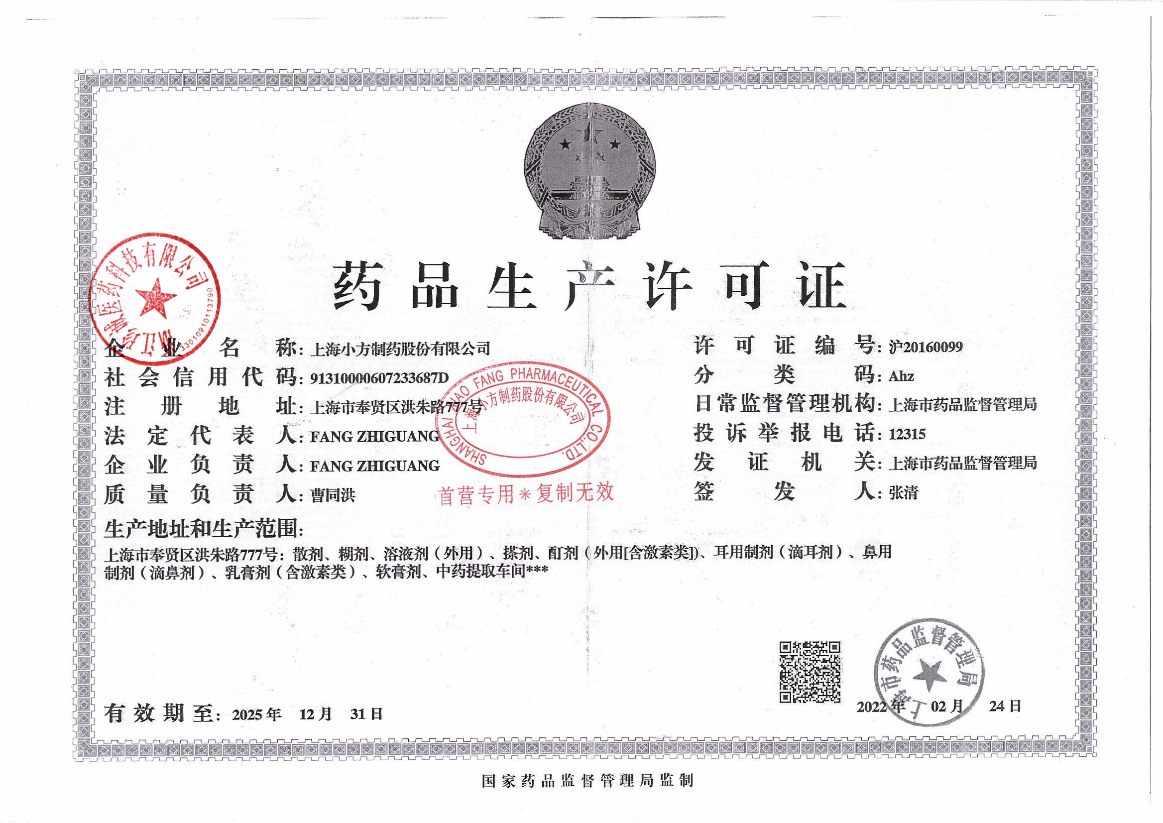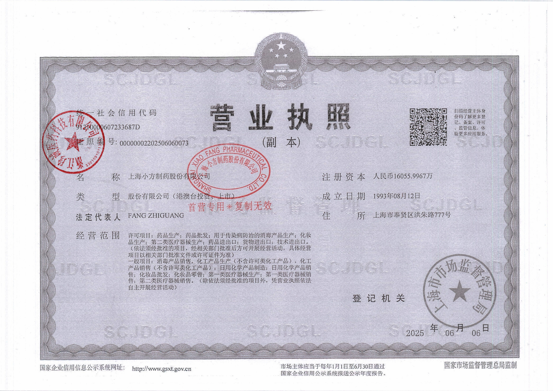 | 1 | Z99009000 | 上海小方制药股份有限公司 | 许可证 (1).jpg | Dec 10, 2025 1:55:02 PM | 查看下载 | |
