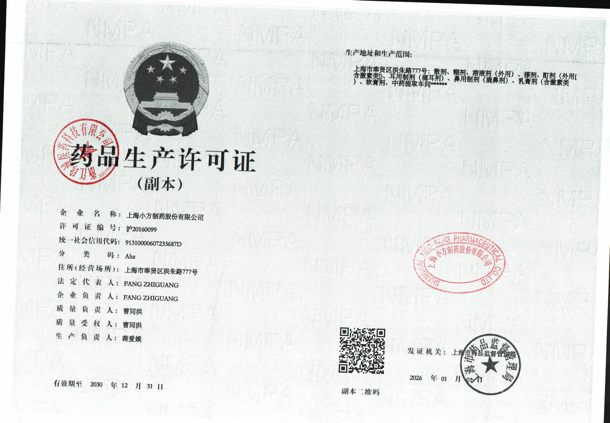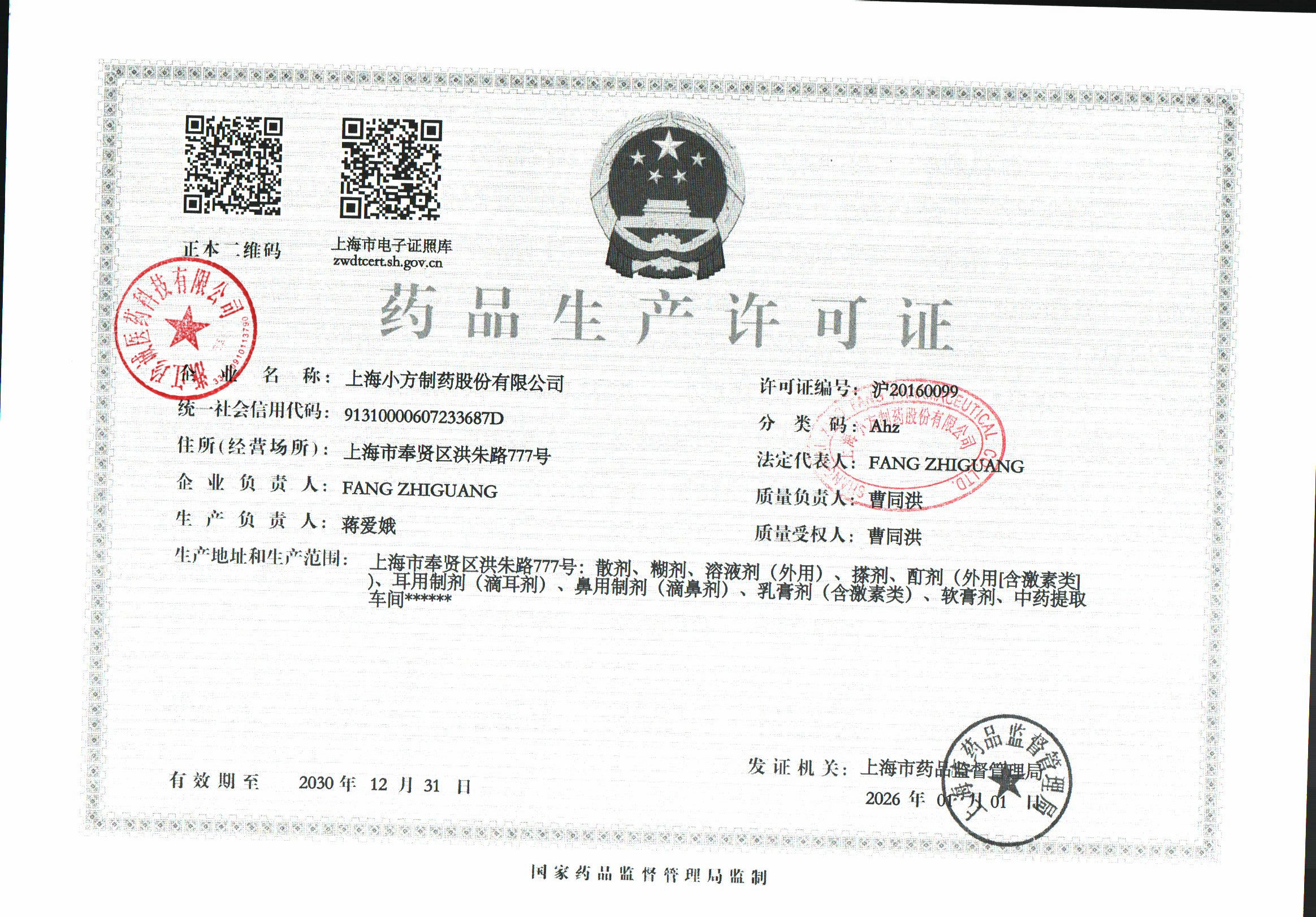 | 1 | Z99009000 | 上海小方制药股份有限公司 | 许可证 (2).jpg | Dec 25, 2025 1:18:06 PM | 查看下载 | |