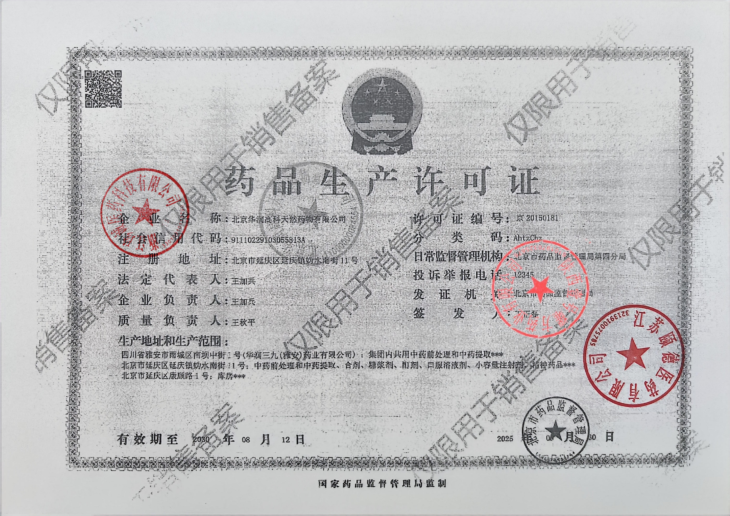 | 1 | Z99009180 | 北京华润高科天然药物有限公司 | 许可证.jpg | Jan 9, 2026 3:16:18 PM | 查看下载 | |