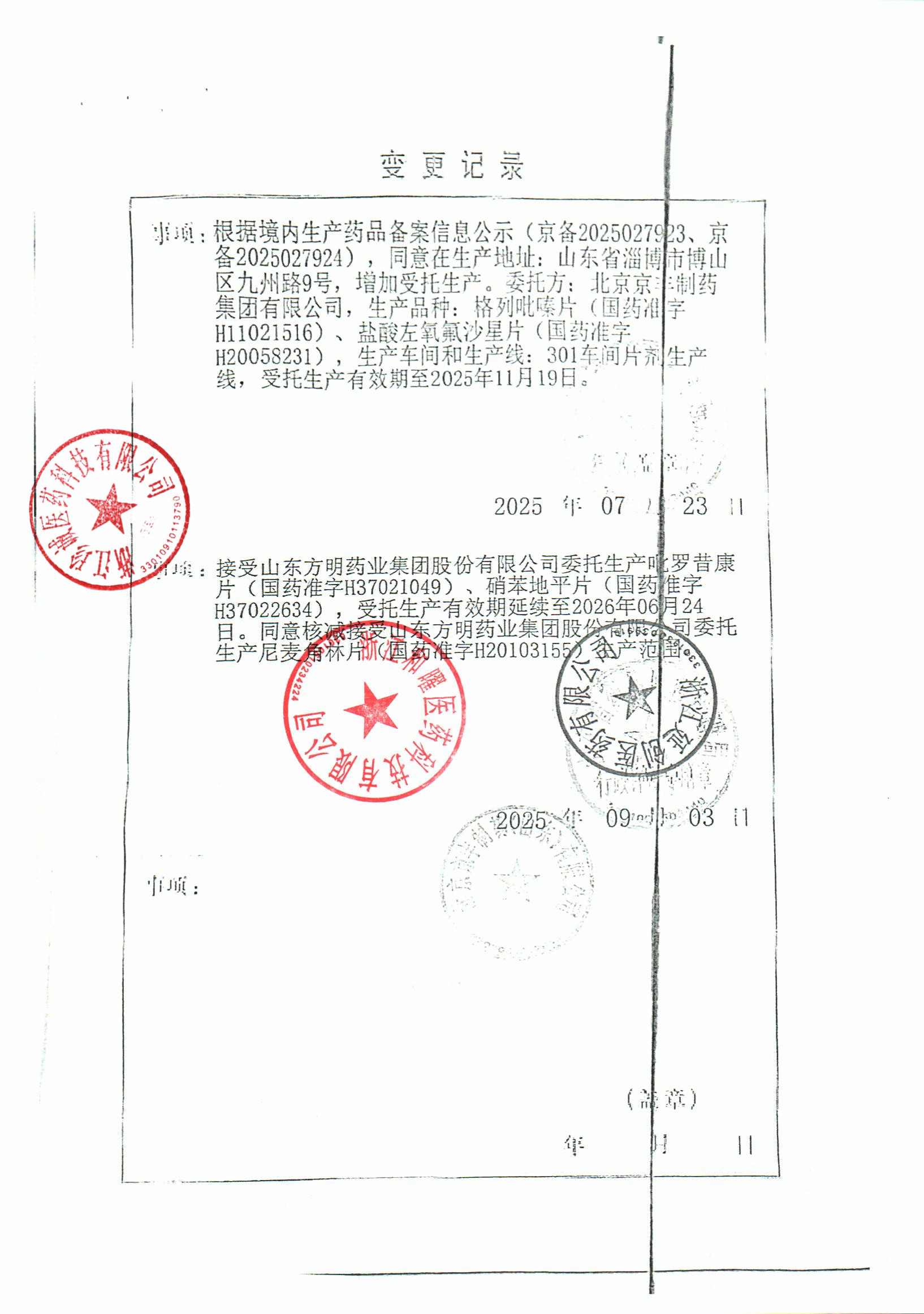 | 2 | Z99009300 | 北京京丰制药(山东)有限公司 | 变更记录 (1).jpg | Jan 22, 2026 2:48:43 PM | 查看下载 | |